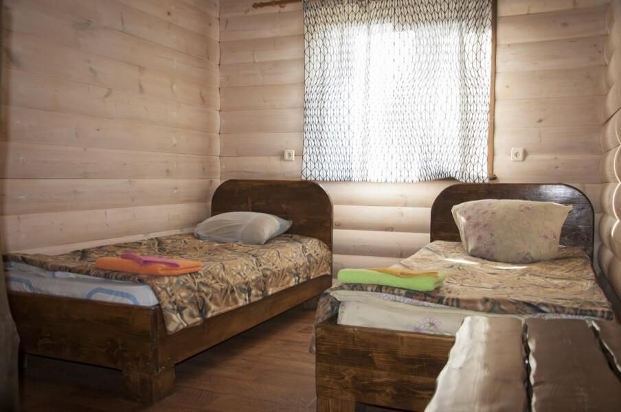 Пять сдвоенных коттеджей, каждый коттедж разделен на две части вместимостью до 4 человек. В каждом коттедже две просторные гостиные с телевизором и четыре спальни, так же два раздельных санузла, холодильник с морозильной камерой, эл. чайник, сплит-система в каждой спальне. Напротив коттеджей есть большие, уютные беседки с видом на Ахтубу.