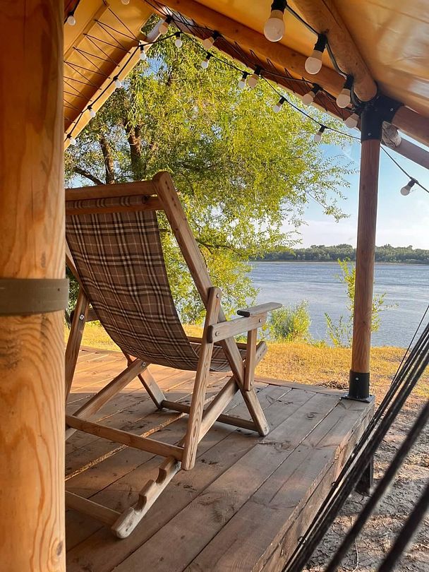 Глэмпы намеренно расположены у самого берега Ахтубы. Чтобы просыпаясь, вы могли прямо из кровати созерцать течение реки и пышные кроны деревьев, наслаждаться гипнотической силой воды и полным единением с природой.