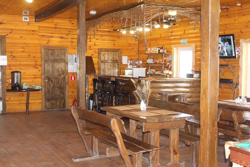 На территории рыболовной базы находится кафе. Расположено в уютном и стильном отдельно стоящем здании. На первом этаже — просторный зал со столиками и бильярдом. Так же предусмотрен выход на террасу — в теплое время года можно расположиться за столиками на свежем воздухе. Вас приятно удивит кухня с домашними блюдами.