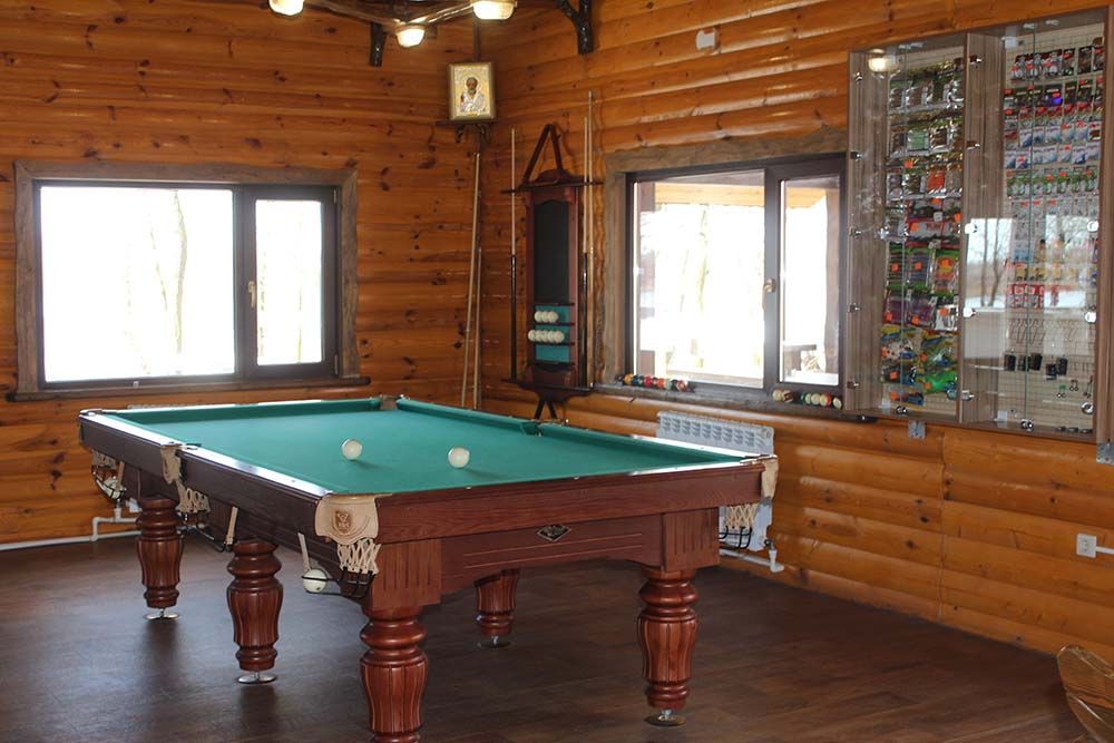 На территории рыболовной базы находится кафе. Расположено в уютном и стильном отдельно стоящем здании. На первом этаже — просторный зал со столиками и бильярдом. Так же предусмотрен выход на террасу — в теплое время года можно расположиться за столиками на свежем воздухе. Вас приятно удивит кухня с домашними блюдами.Стоимость