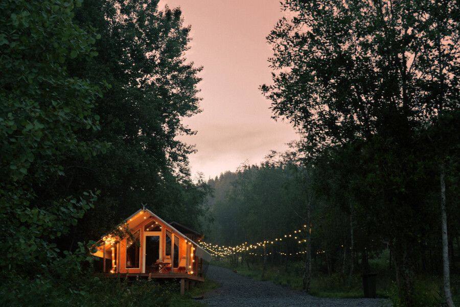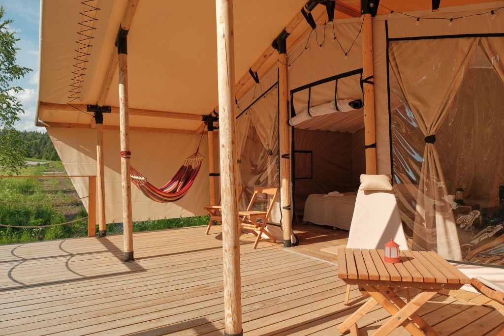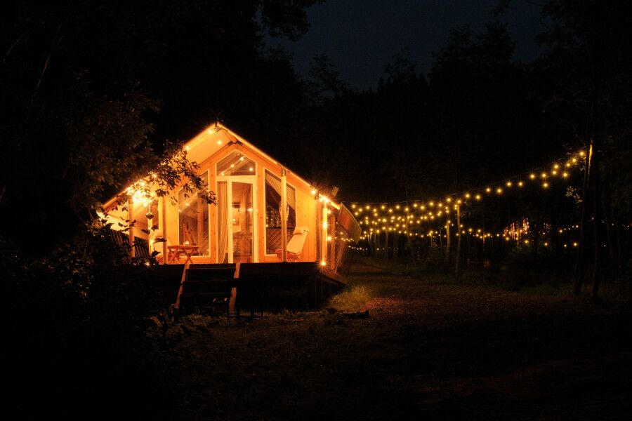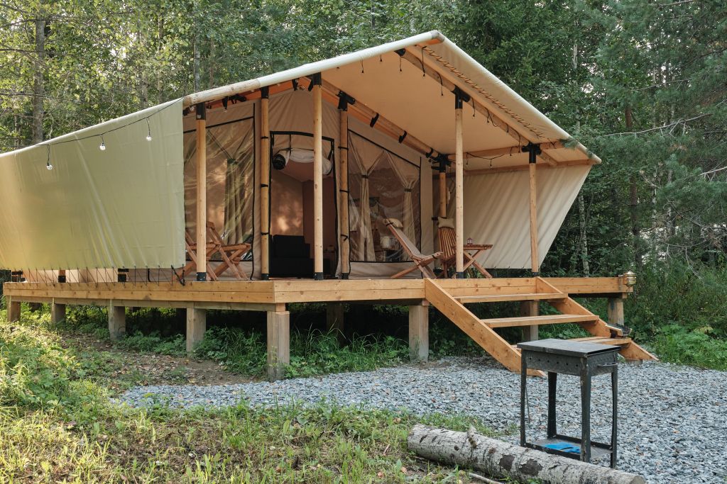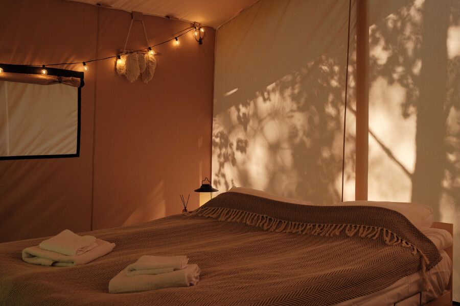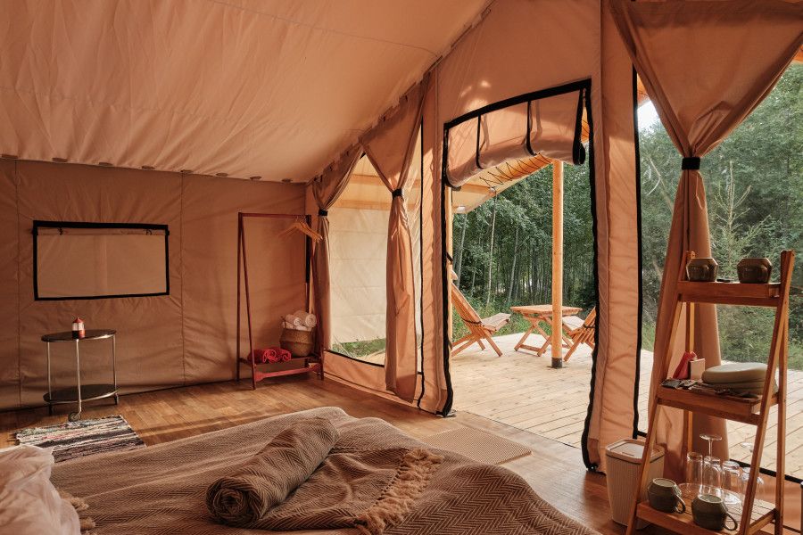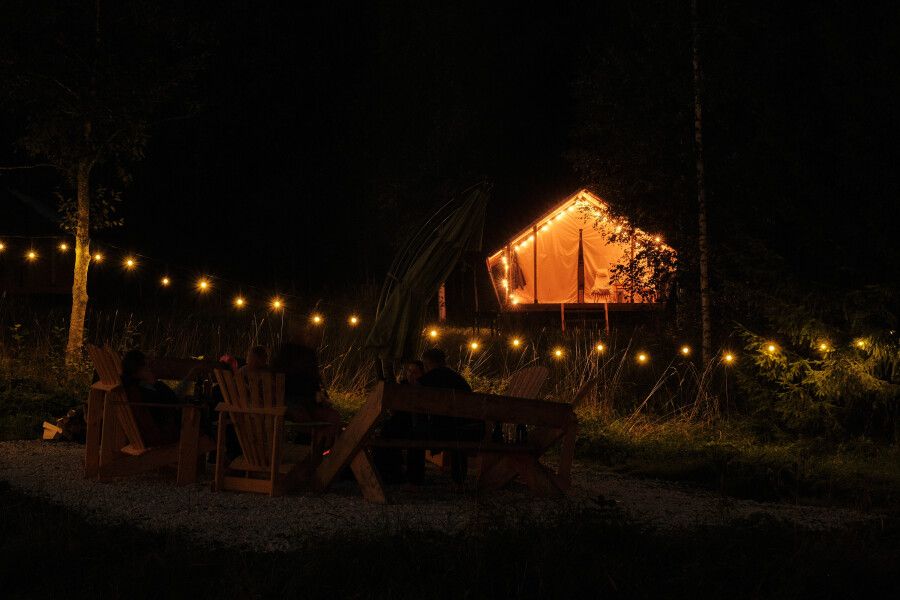 На территории находится девять стандартных сафари-тентов с теплыми полами и живописными видами. В мае и сентябре открываются три стандартных номера и покрываются специальным одеялом для палаток. За счет этого внутри палатки комфортно даже при минусовой температуре.
