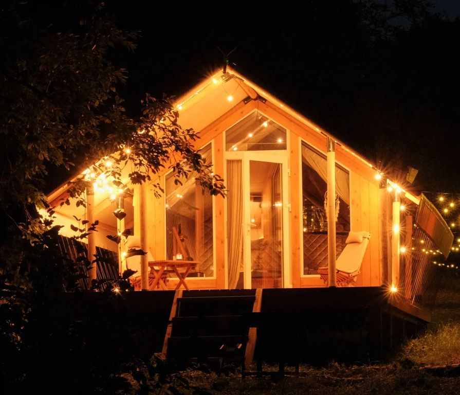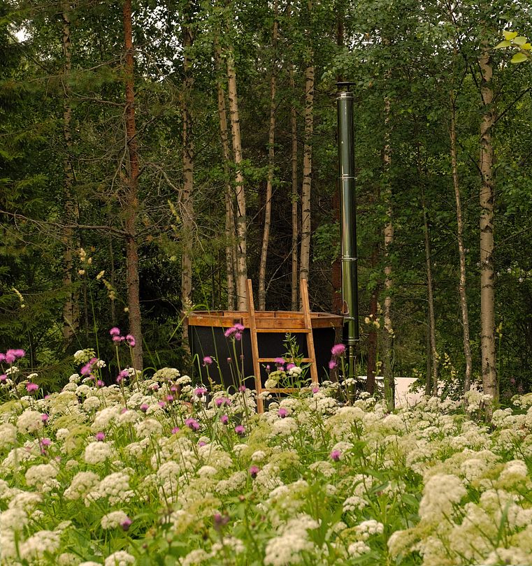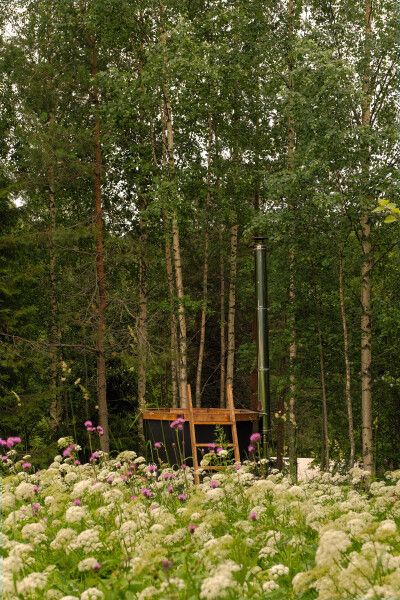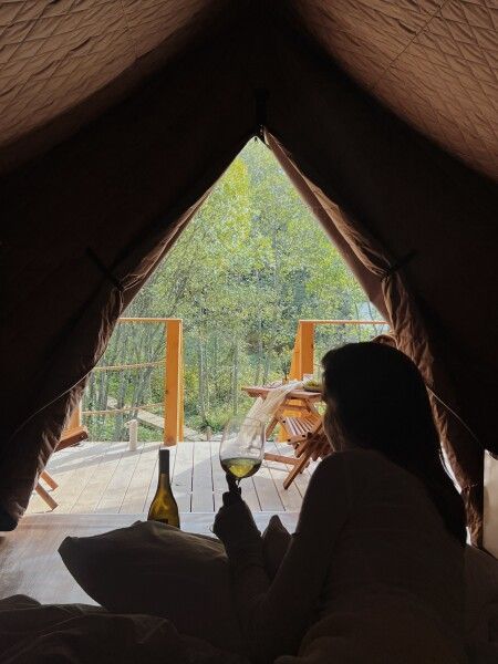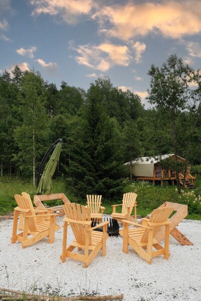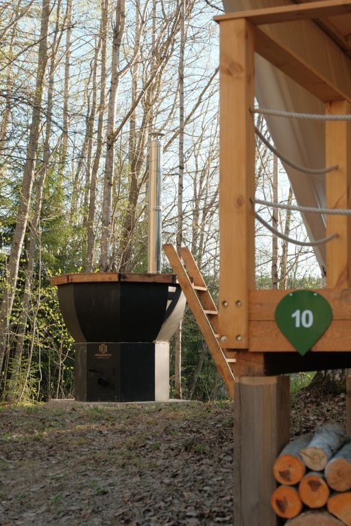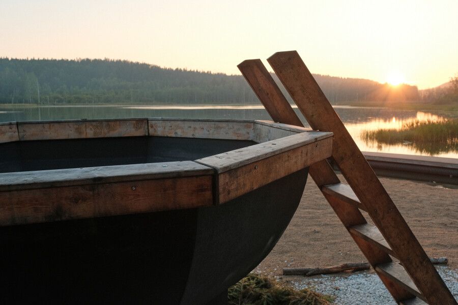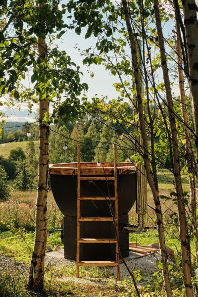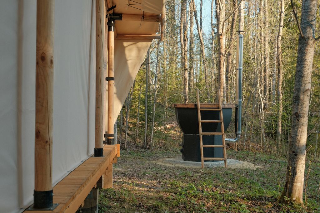 Глэмпинг предлагает посетить горячие чаны с потрясающим видом на озеро, лес и долину. Чаны нагреваются около трех часов и могут использоваться как купели с прохладной водой в жаркую погоду, создавая идеальные условия для восстановления и расслабления вдали от городской суеты.