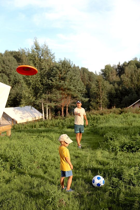 Гости могут наслаждаться разнообразными активностями: велопрогулки, спортивные мероприятия и эко-тропы протяженностью около пяти километров. В мае можно наблюдать за перелетными птицами, прогуливаться с горячим кофе или чаем и любоваться первыми весенними цветами. Летом доступны сбор ягод, полевых цветов и трав, купание в озере и катание на сапах. Июнь порадует белыми ночами, а август — падающими звездами. В сентябре можно отправиться за грибами и, возможно, увидеть северное сияние.