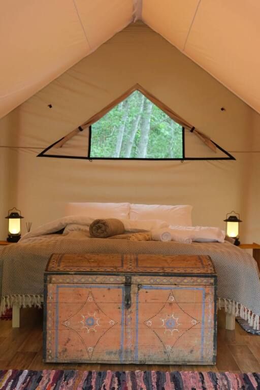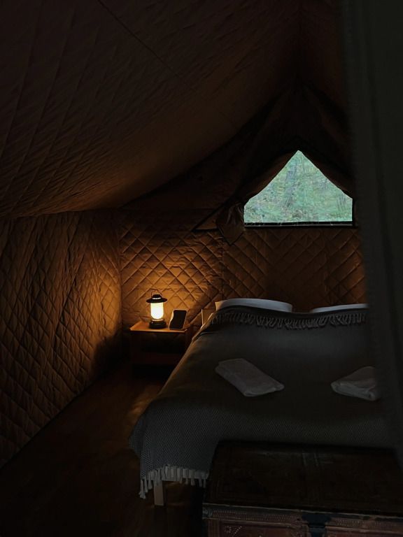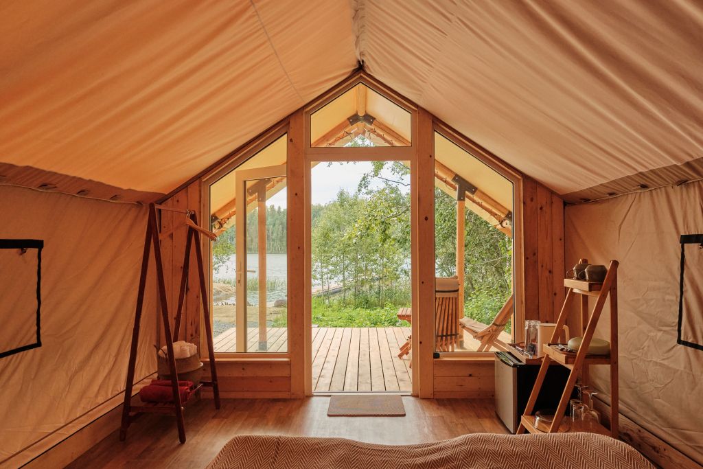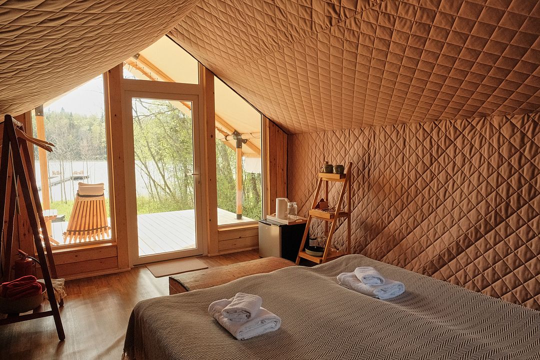Сафари-тент с панорамным окном и видом на озеро