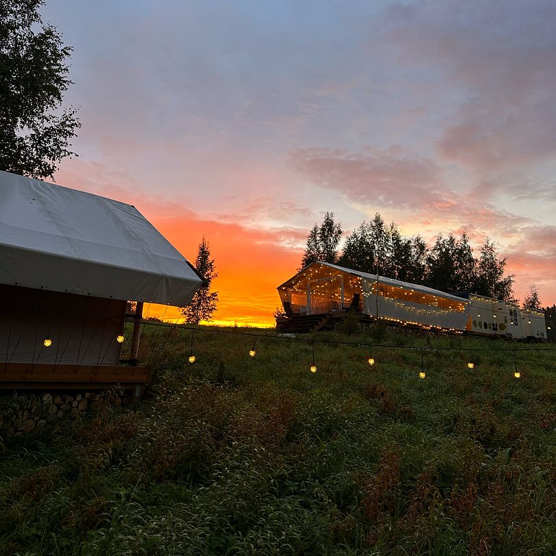 Читать полностьюРесторан в глэмпинге предлагает гостям авторские блюда, вдохновленные карельскими кулинарными традициями, и классические варианты для любителей привычной кухни. С мая по сентябрь меню радует сезонными угощениями, детскими блюдами и чаепитием с самоваром.