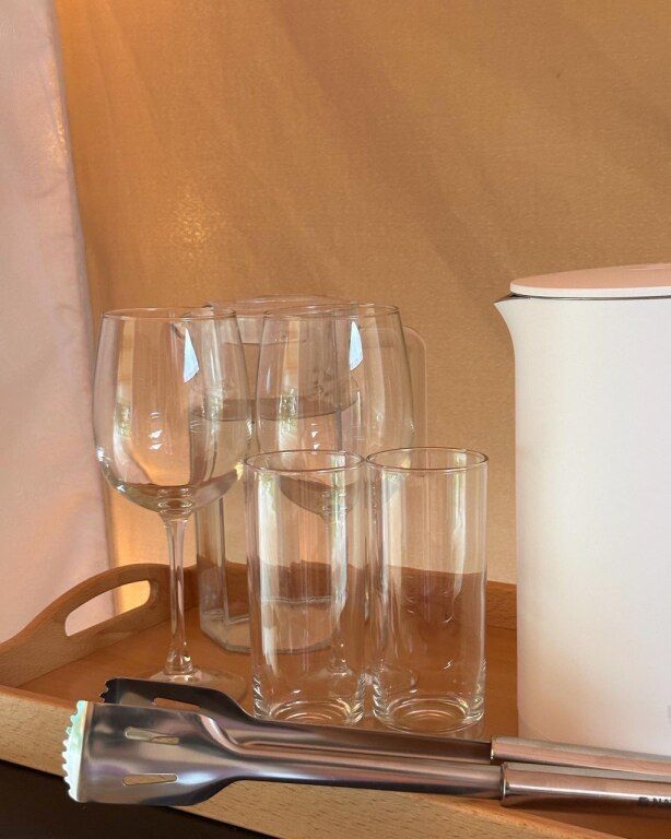 В номере есть холодильник, розетки, чай, кувшин с водой, электрический чайник и набор посуды, а рядом с каждым номером установлен мангал. Душевая и туалет оснащены шампунем, бальзамом для волос, гелем для тела, феном, халатами, мылом для рук и белоснежными полотенцами для лица и тела. Зеленые полотенца можно использовать для купания в озере и в чане.