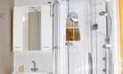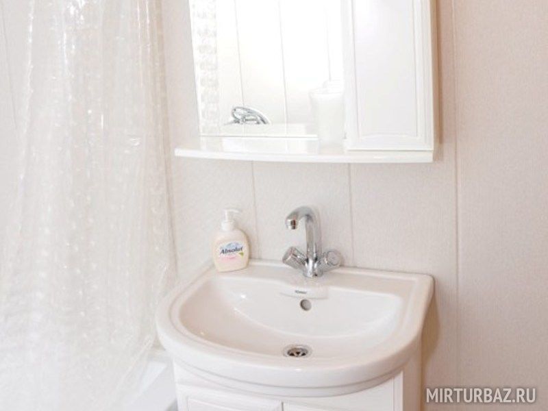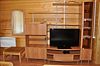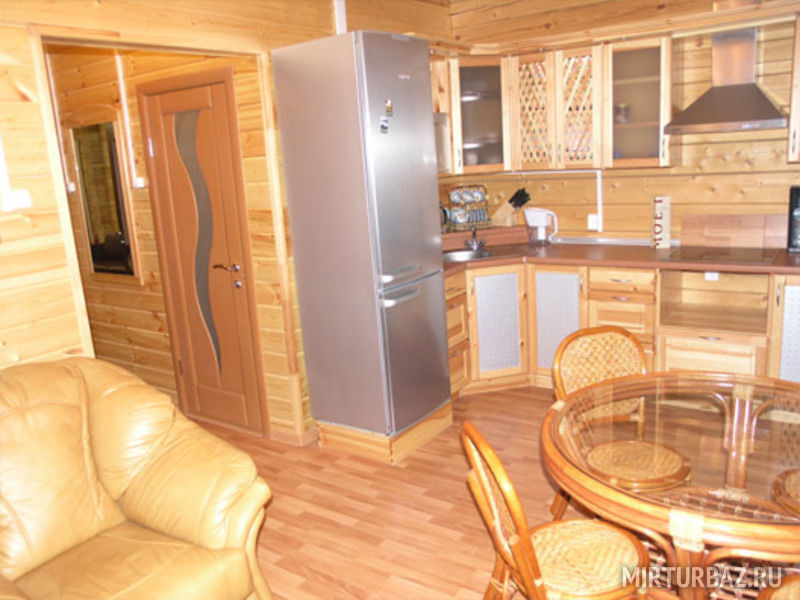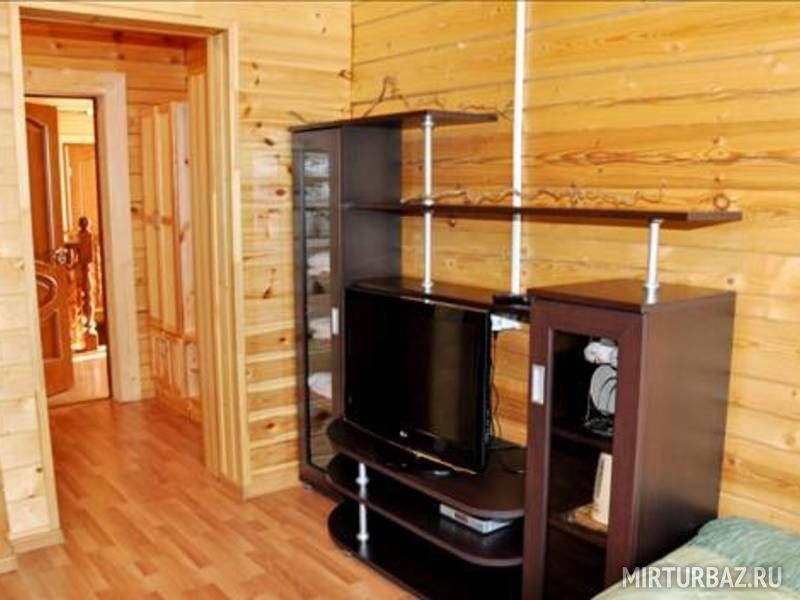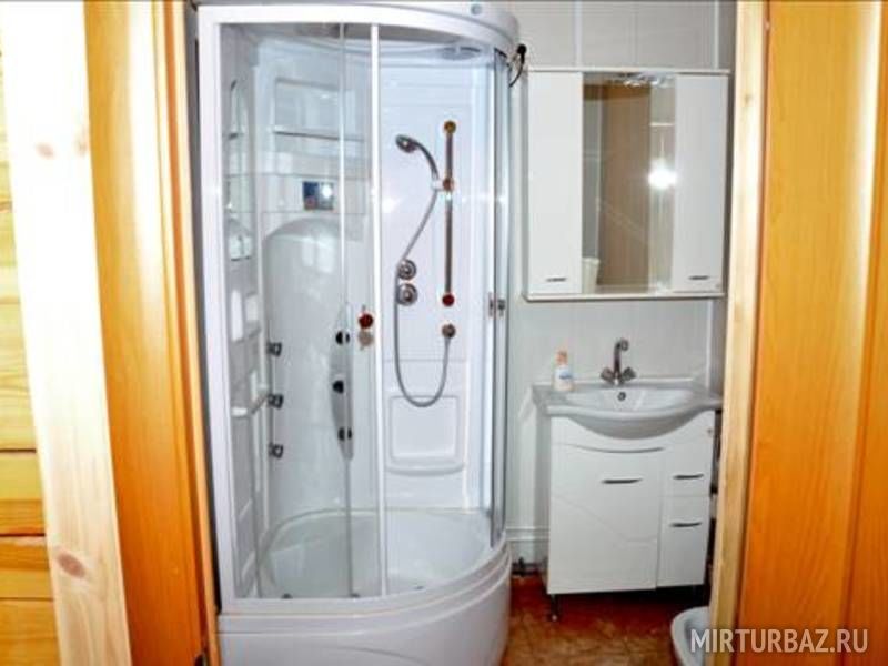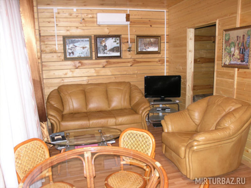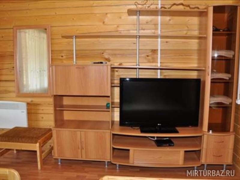 (2 двухспальные кровати (исключение 1 коттедж — 3 односпальные кровати), угловой диван, телевизор, санузел, душевая кабина, фен, чайник, чайный сервиз, холодильник)