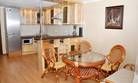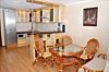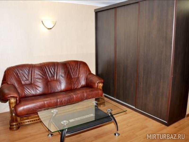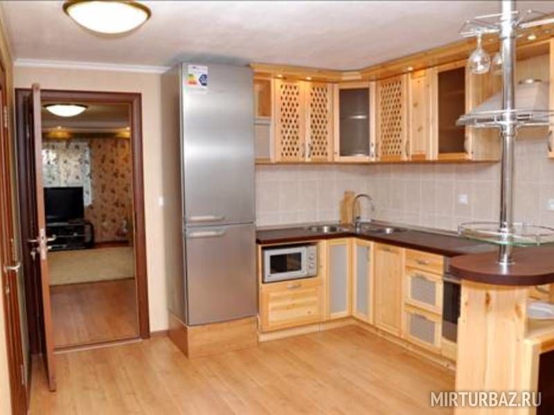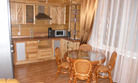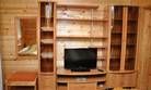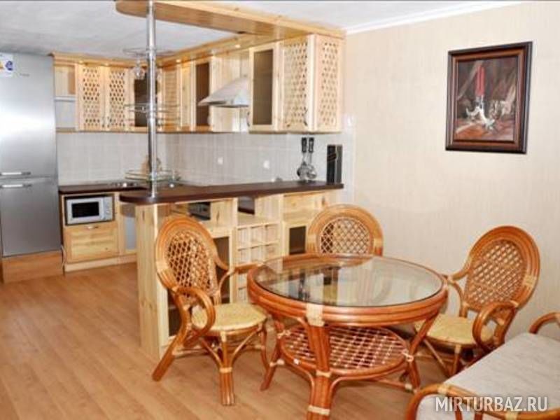 двухспальная кровать, диван, кресло, телевизор, санузел, душевая кабина, фен, посуда на 12 персон, холодильник, стеклянный кухонный стол с 4-мя стульями