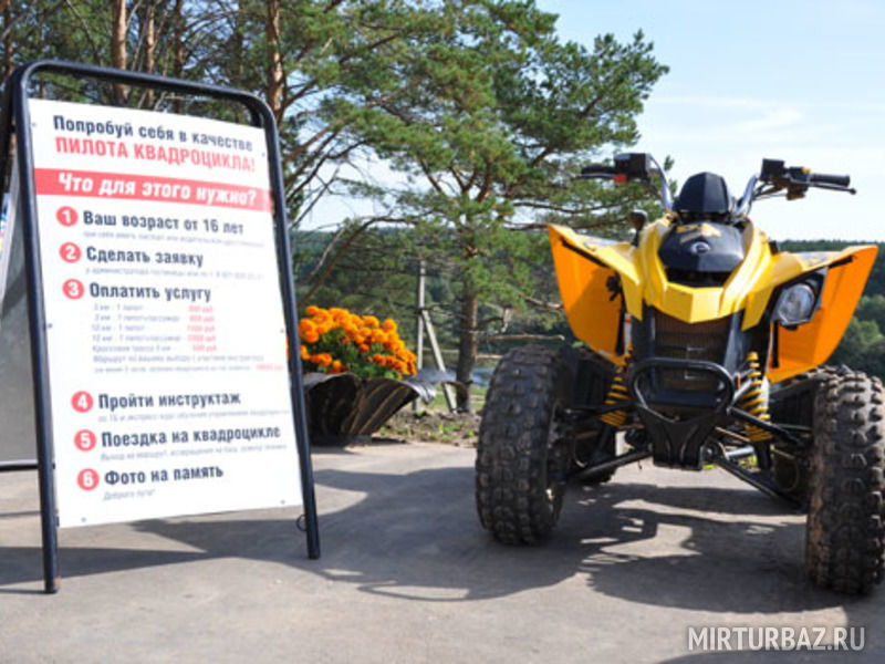 Квадроциклы: Polaris Sportsman 500, Stels 300 (взросл.), Stels 50 (детск.).