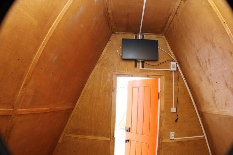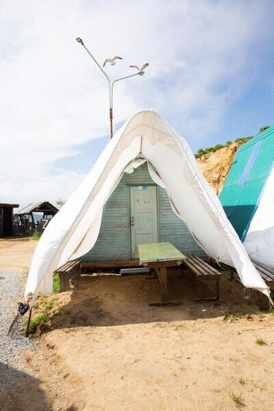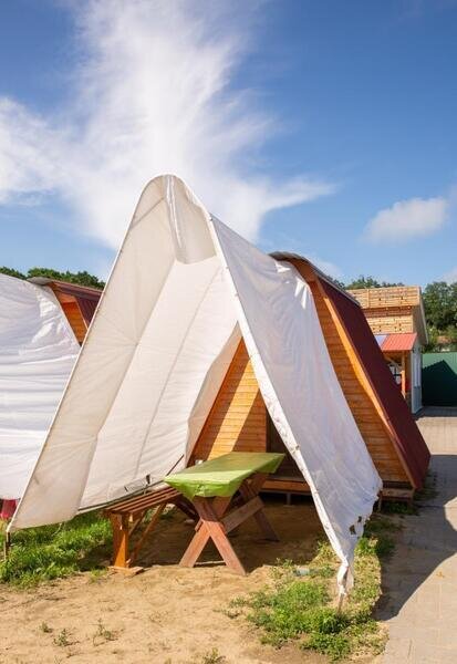 Для гостей, которые приезжают в 2 соседних домика на базу отдыха есть услуга натяжения общего тента. Самостоятельное вмешательство в конструкцию домика запрещено.