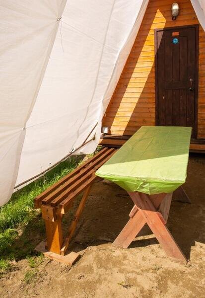 Установка палаток на территории базы отдыха ЗАПРЕЩЕНА. Небольшую палатку можно разместить под тентом домика за 2000р. сутки.