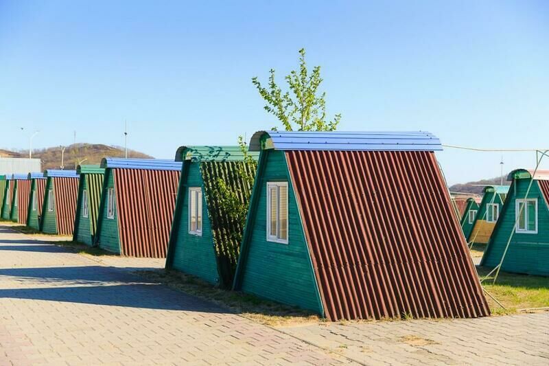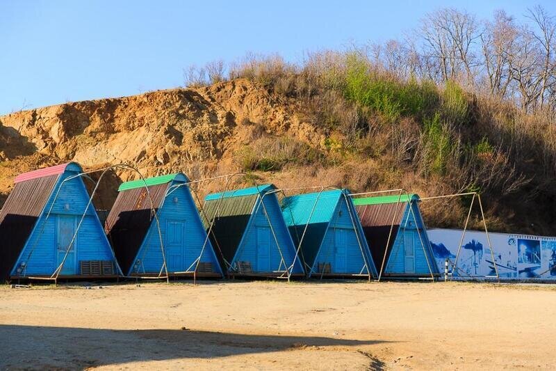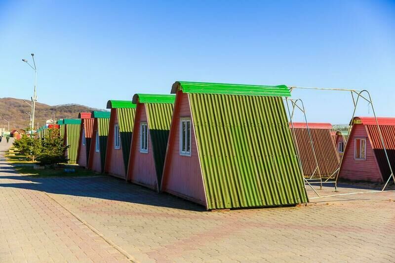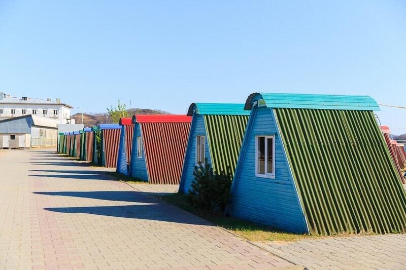 Спортивная зона подойдет тем, кто предпочитает динамичный ритм времяпрепровождения и ищет отдых, насыщенный разными видами активности. Здесь более просторные домики, чем на улице Молодежная. Рядом с домиками на улице Спортивная много мест, куда можно отправиться: кафе-бар «Клен», зажигательный бар, супермаркет, а также длинная торговая зона, где можно приобрести купальник, сувенир на память или, например, надувной круг. В пешей доступности от домиков находится санблок.