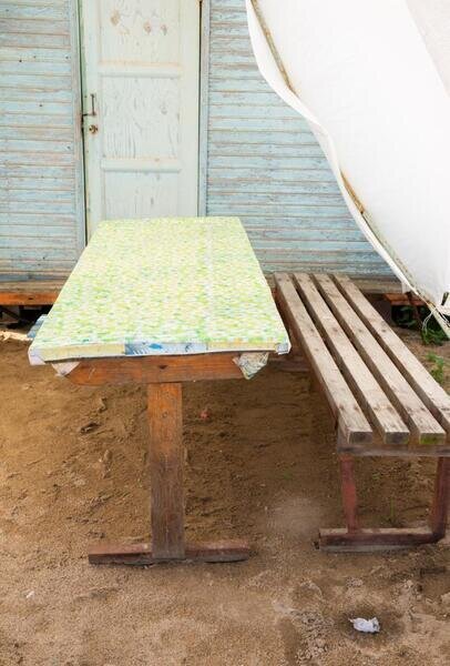 - деревянный столик и скамейка.