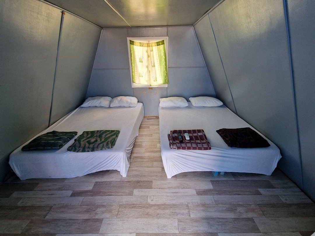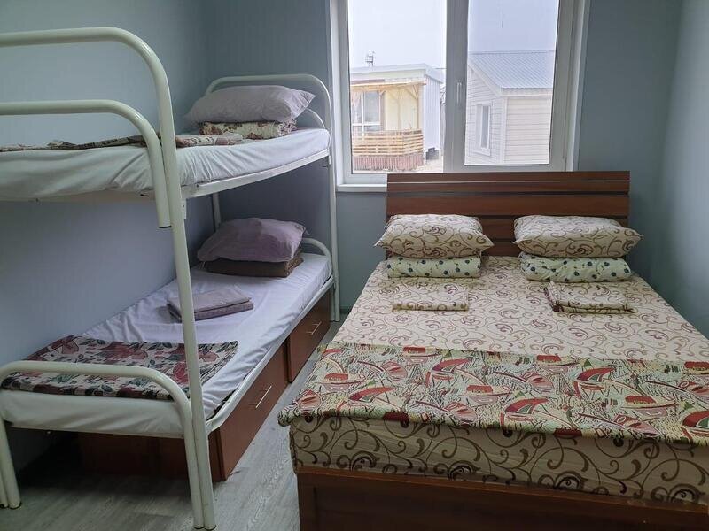 Постельное бельё не входит в комплектацию домика, его можно взять в аренду на базе, либо привезти с собой.