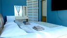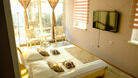 двуспальная кровать, кондиционер, шкаф, комод, телевизор, холодильник, балкон, санузел (туалет/душ)