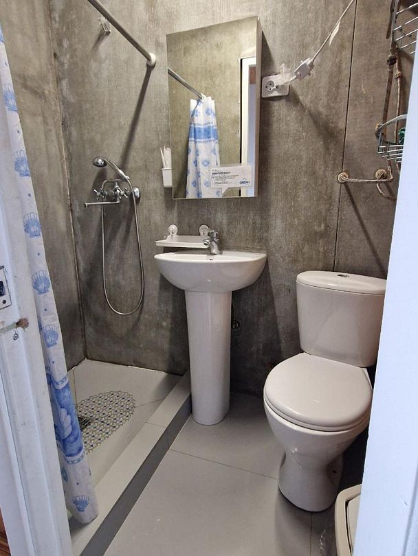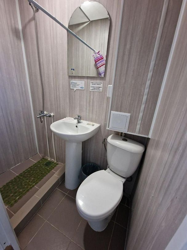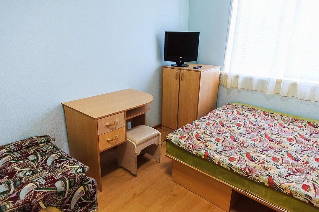 двухъярусная кровать, диван, телевизор, холодильник, кондиционер, общая гостиная с кухней, 2 туалета и 1 душ с расчетом на 6 номеров.