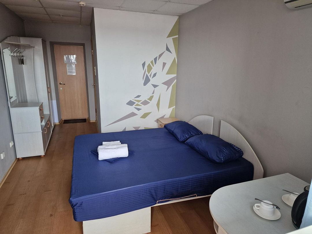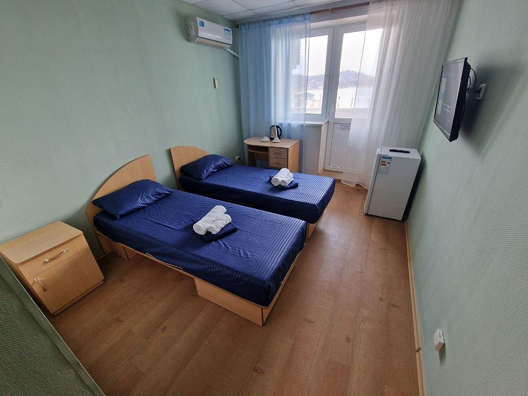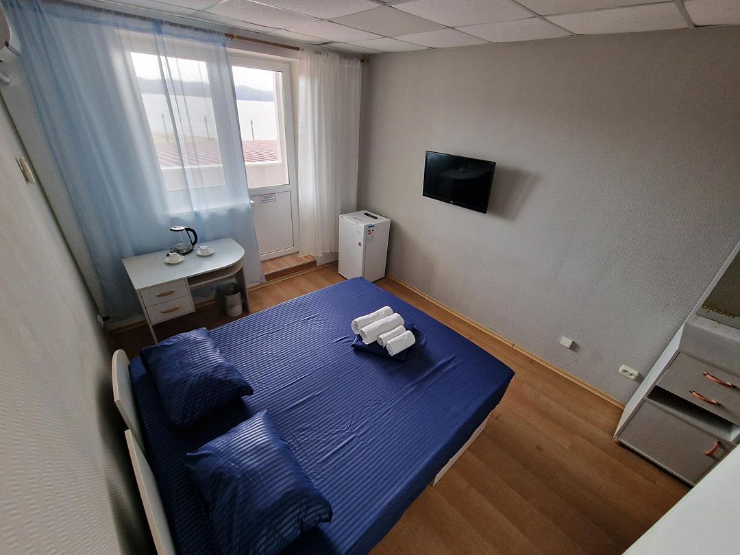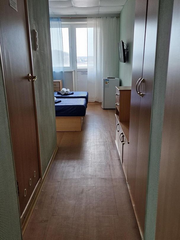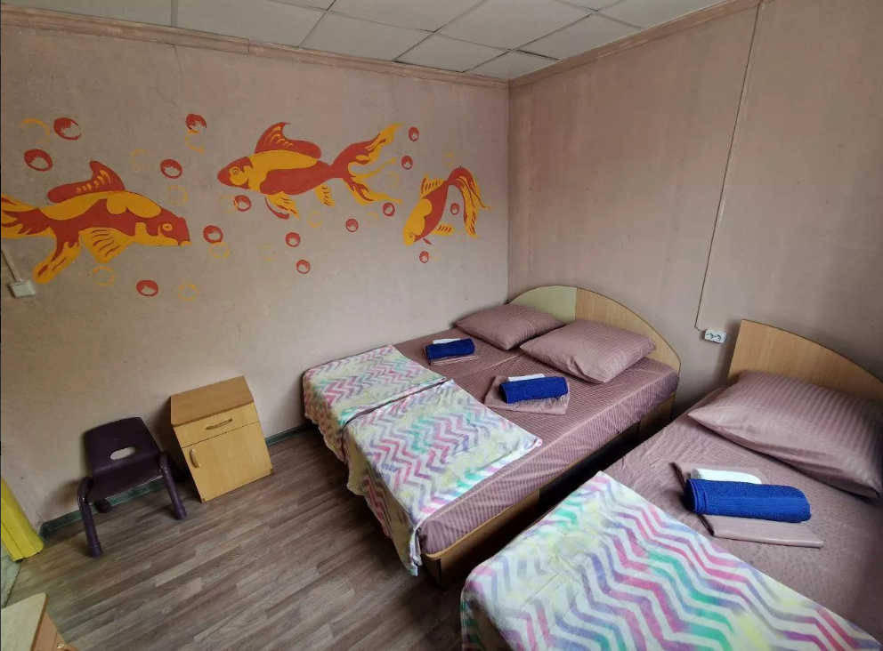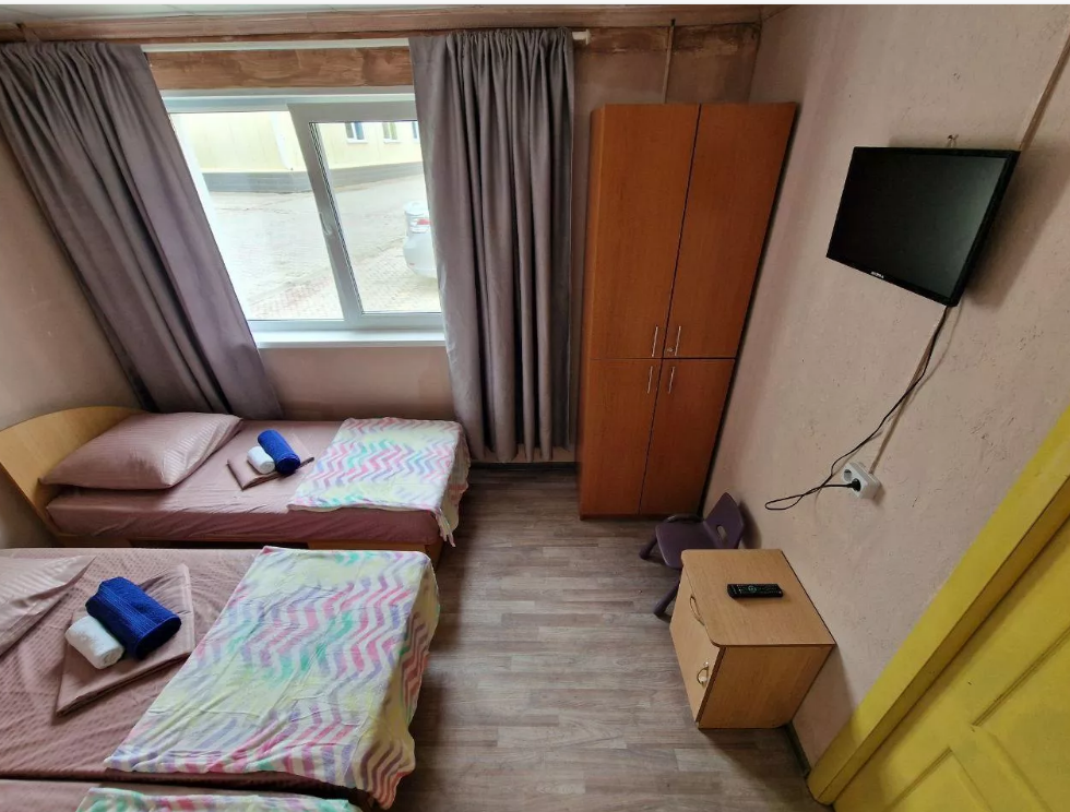 двуспальная кровать, двухъярусная кровать, телевизор, холодильник, шкаф, туалет и душ находятся на этаже номера.