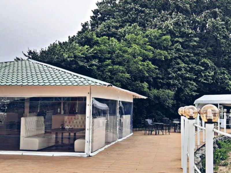 Услуга "Объединение тентов" – это сервис, предоставляемый управляющей компанией, включающий временное объединение двух тентовых домиков в один общий для создания более просторного помещения. Услуга включает в себя оперативное соединение домиков до заезда гостей и последующее разъединение тентов после их выезда, стоимость 5000р.