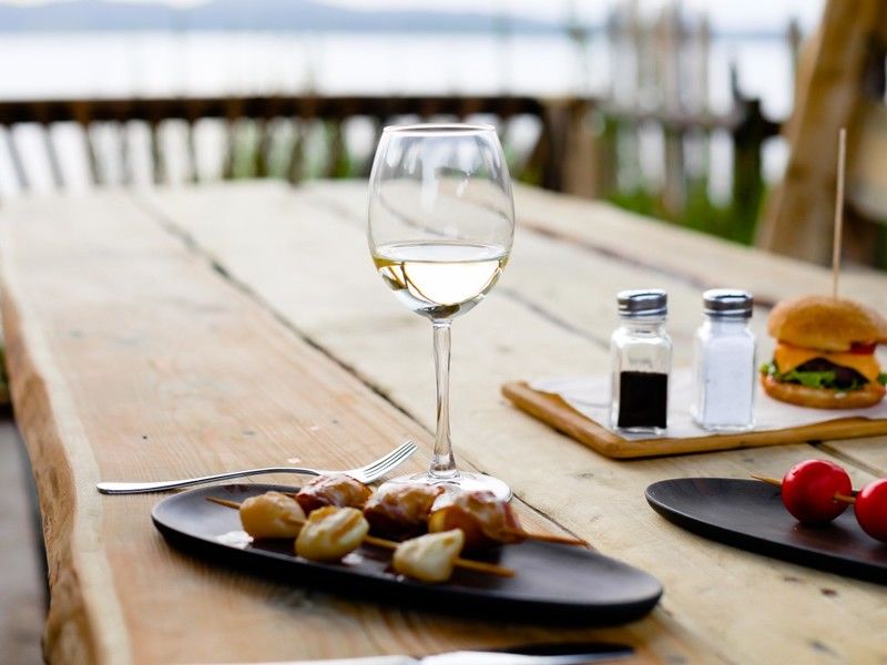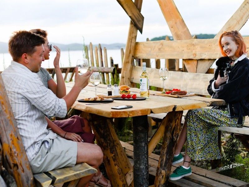 В ассортименте меню есть нежнейшая семга, сочные мясные стейки, ароматные колбаски, шашлычки на шпажках, от которых вы останетесь довольны, отменный гребешок в сливочном соусе, а свежевыловленный палтус, приготовленный на гриле выше всяких похвал. Также вас порадуют разнообразные салаты, сырные и мясные нарезки, холодные и горячие закуски.