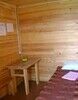 В домике: две комнаты, в каждой - две односпальные кровати, столик, табуретки.