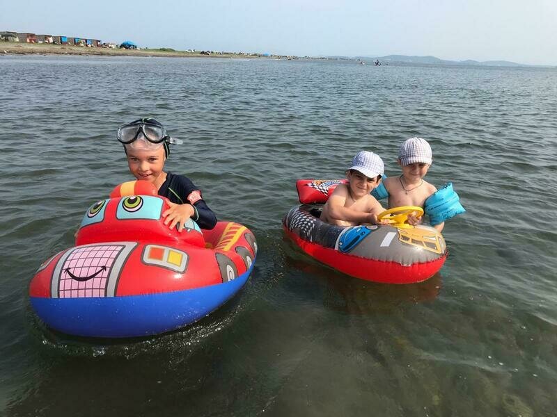 Поездом до ж/д вокзала ст. Хасан, далее на такси до базы отдыха.