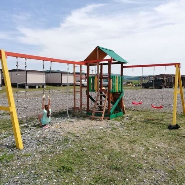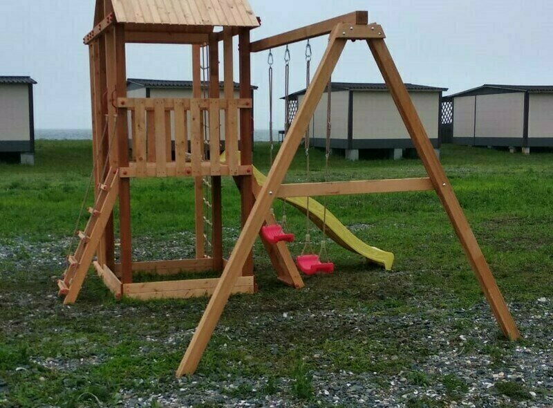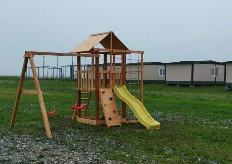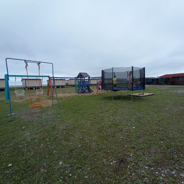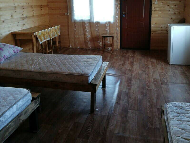 На территории расположены четырехместные дома 24 кв.м., в которых имеется: две односпальные кровати, одна двуспальная кровать, стол и четыре стула, вешалка для одежды, лампы, вентилятор, холодильник, телевизор. На кроватях матрасы и подушки. Туалеты и душевые кабины расположены на территории, расстояние до них от 50 до 100 метров, в зависимости от расположения дома. Имеется пять душевых кабинок с горячей и холодной водой (время подачи горячей воды с 18.00 до 22.00 часов). В туалетах - напольный металлический унитаз, шесть кабинок отдельно как для мужчин, так и для женщин.