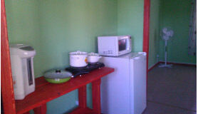 В каждом номере есть: телевизор, микроволновая печь, вентилятор, полный набор посуды на 4-х человек, умывальник, холодильник, кухонная электрическая плита, поттер, 2 односпальные кровати, 1 двуспальная кровать, постельное белье, легкие пледы, подушки, стеллаж или тумба.