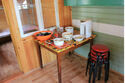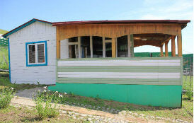 Уютный деревянный домик с кухней и верандой. Отличный вариант для семейного отдыха или компании из 5-ти человек. Домик одноэтажный с отдельным входом и верандой. Состоит из кухни (6 кв.м) и спальни (8 кв.м). Удобства - туалет и душ находятся на территории базы.