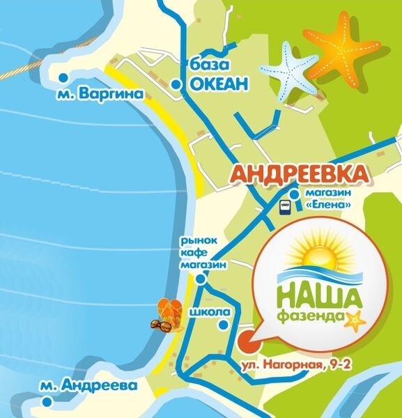 База отдыха «Наша Фазенда» - идеально подойдет для отдыха с семьей на берегу моря. Расположена база на самом юге Приморского края, в Хасанском районе, в поселке Андреевка. База открыта только в летний период с мая по сентябрь.