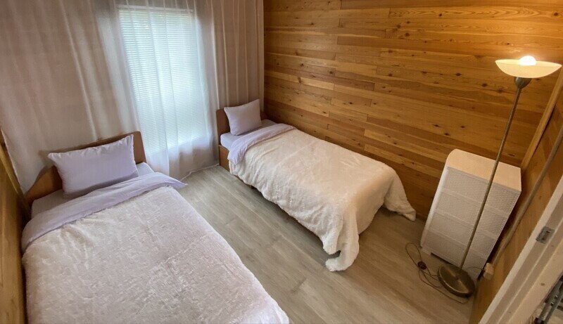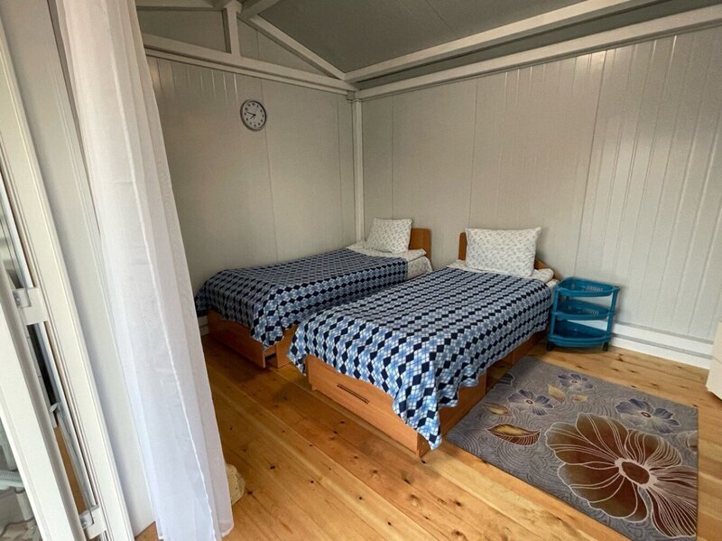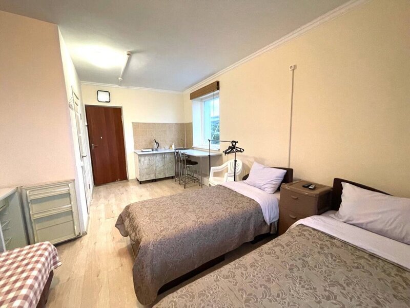 две 1-спальные кровати, холодильник, эл. плита, шкаф, с/у с душем