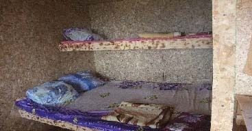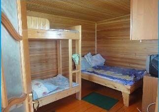 - В домике огромная деревянная двухъярусная кровать (на каждом ярусе может разместиться три,четыре человека).
