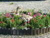 - К домику пристроен теневой навес на котором стоит стол и скамейки.