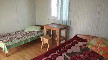 В доме одно общее помещение. Двухспальная кровать, дополнительная откидная кровать, тумбочка .Постельное белье, одеяла и подушки выдаются бесплатно. Хозяйственный инвентарь для уборки и мытья выдается бесплатно.