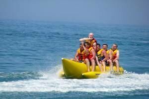 Традиционное развлечение на всех морских курортах. Банан представляет собой надувное плавательное средство, форма которого напоминает банан. Данное приспособление для развлечений буксируется катером, гидроциклом и другим водным быстроходным видом транспорта.
