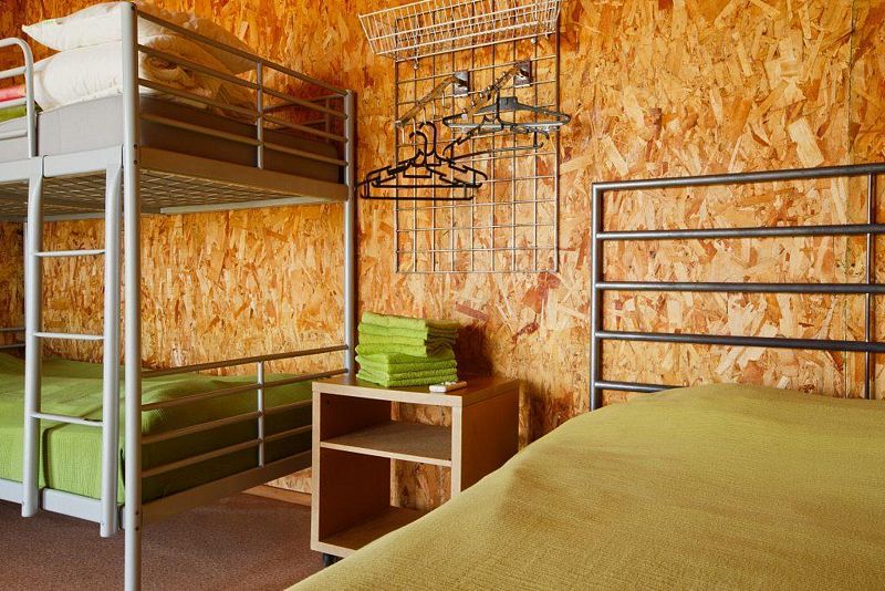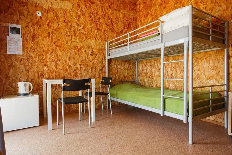 В номере: душевая кабина/ванна, раковина, унитаз, кондиционер, телевизор, холодильник, чайник, вешалка, накопительный электрический бойлер, Wi-Fi, двуспальная кровать и двухэтажная, тумбочки, стол, стулья, вешалка