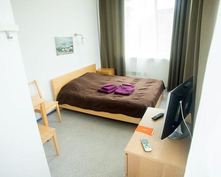 Двухместный номер в 3-х этажной гостинице. Близость к морю (60 метров), вид из каждого номера на лес. Не выходя на улицу, из номера «Стандарт» можно спуститься в столовую, пройти в кафе, спортивный зал, конференц-зал.