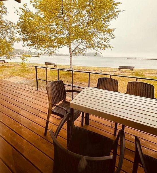 Инфраструктура: зона отдыха, обливное ведроНа территории базы расположены две сауны. Каждая сауна состоит из парилки с печкой-каменкой, комнаты отдыха, туалета и душевой и рассчитана на компанию из 6-8 человек. Перед каждой баней - комфортная мансарда, где можно расслабиться и понаблюдать морские пейзажи.