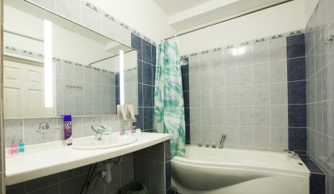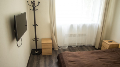 В номере: душевая кабина, раковина, унитаз, кондиционер, телевизор, холодильник, чайник, вешалка, накопительный электрический бойлер, Wi-Fi, двуспальная кровать, тумбочки, стол, стулья, вешалка.