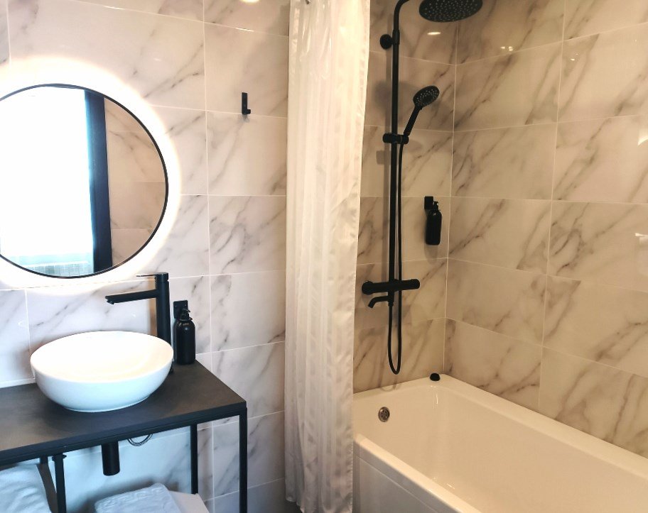 спутниковое телевидение, Wi-Fi, фен, электронные замки, ванная комната, ванна, санузел, теплый пол, халаты, банные полотенца, тапочки, гигиенические средства, кровать «King size», стулья, вешалки, журнальный столик, зеркало, чайный набор, набор посуды, сейф, чайник, унитаз, раковина, мягкая мебель, гостиная зона, ковровое покрытие, отопление, стаканы, стул, туалетные средства, туалет, раскладной диван, внутренний телефон, телевизор с плоским экраном, мини-холодильник, номер для некурящих, рабочий стол, можно с питомцамиВ гостиничном номере
