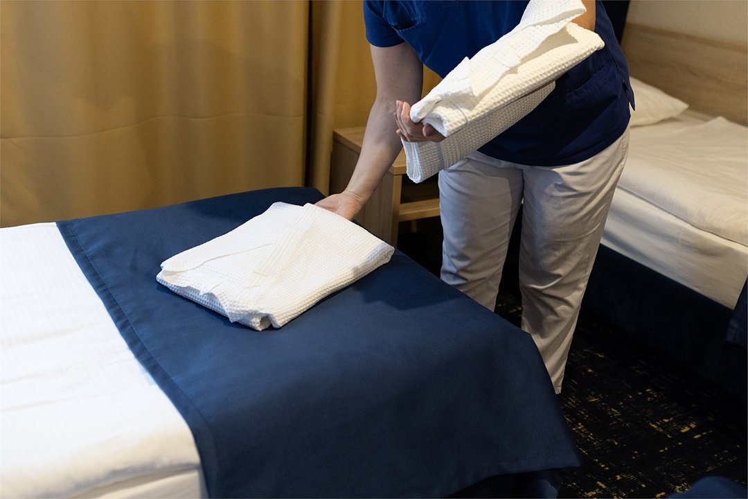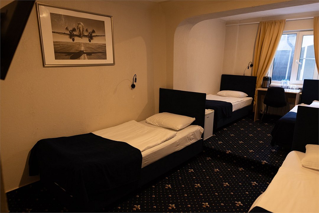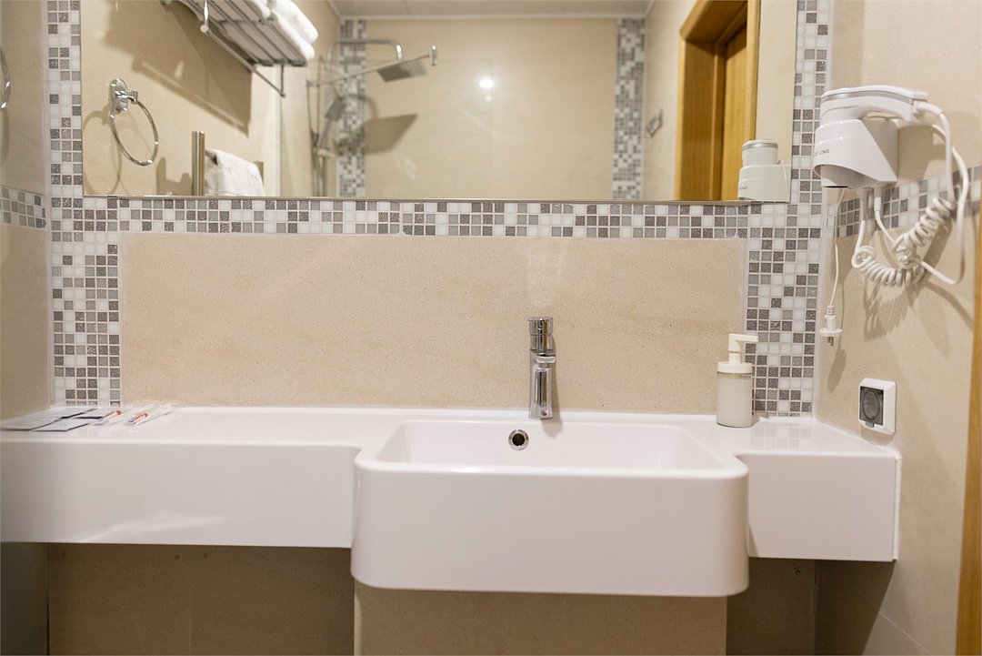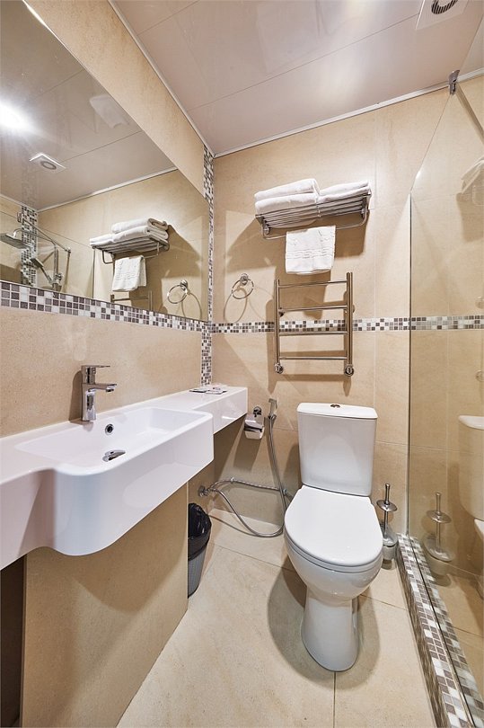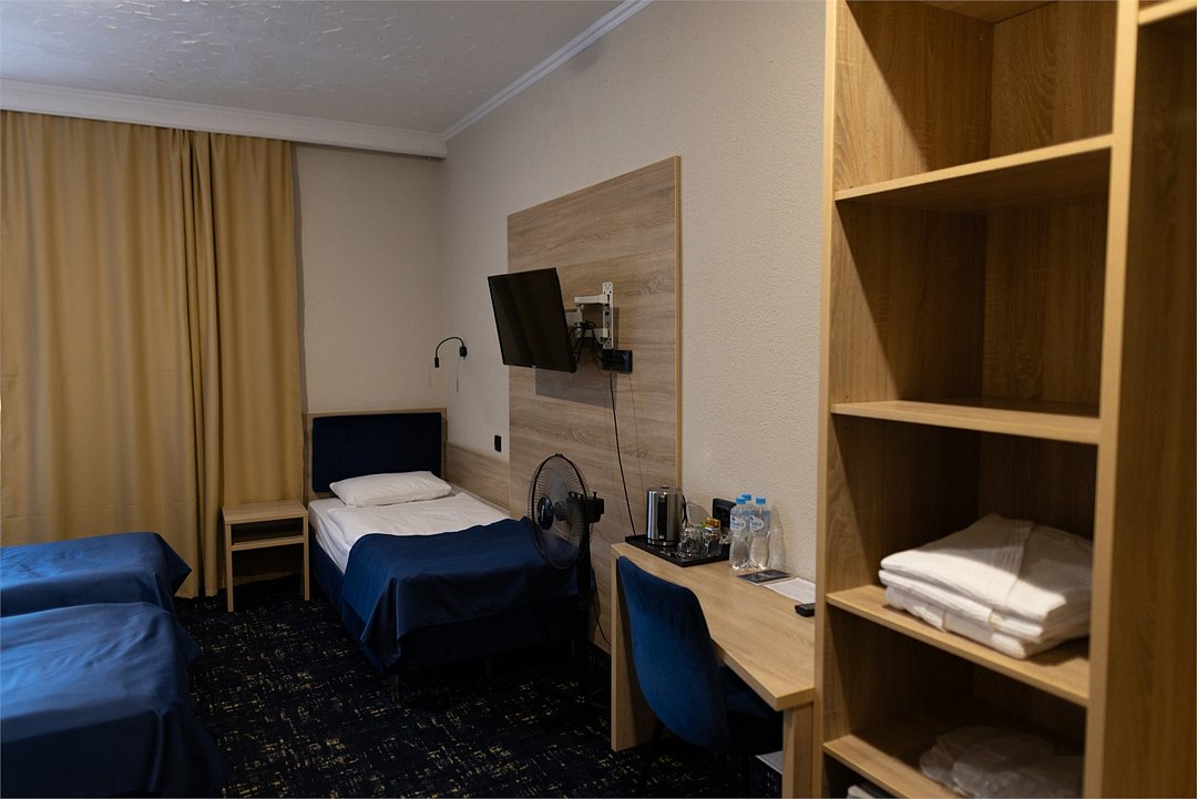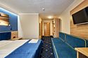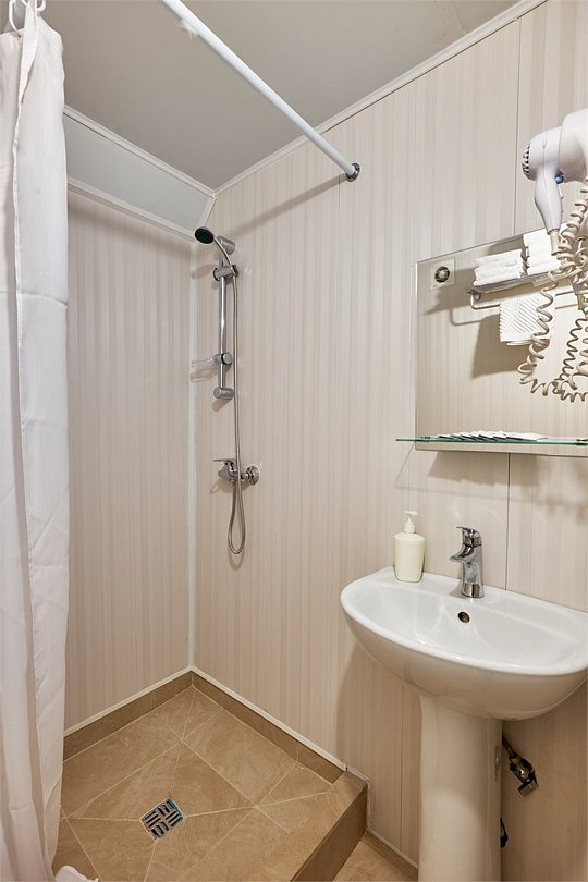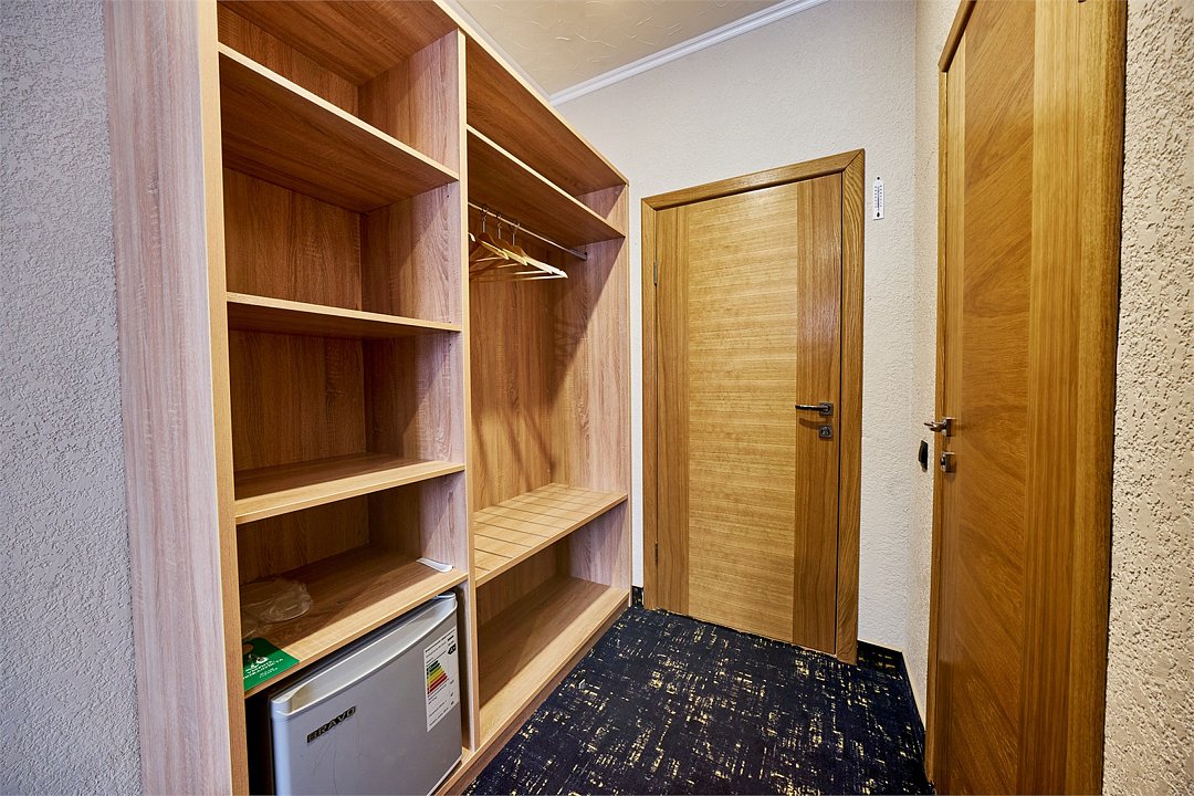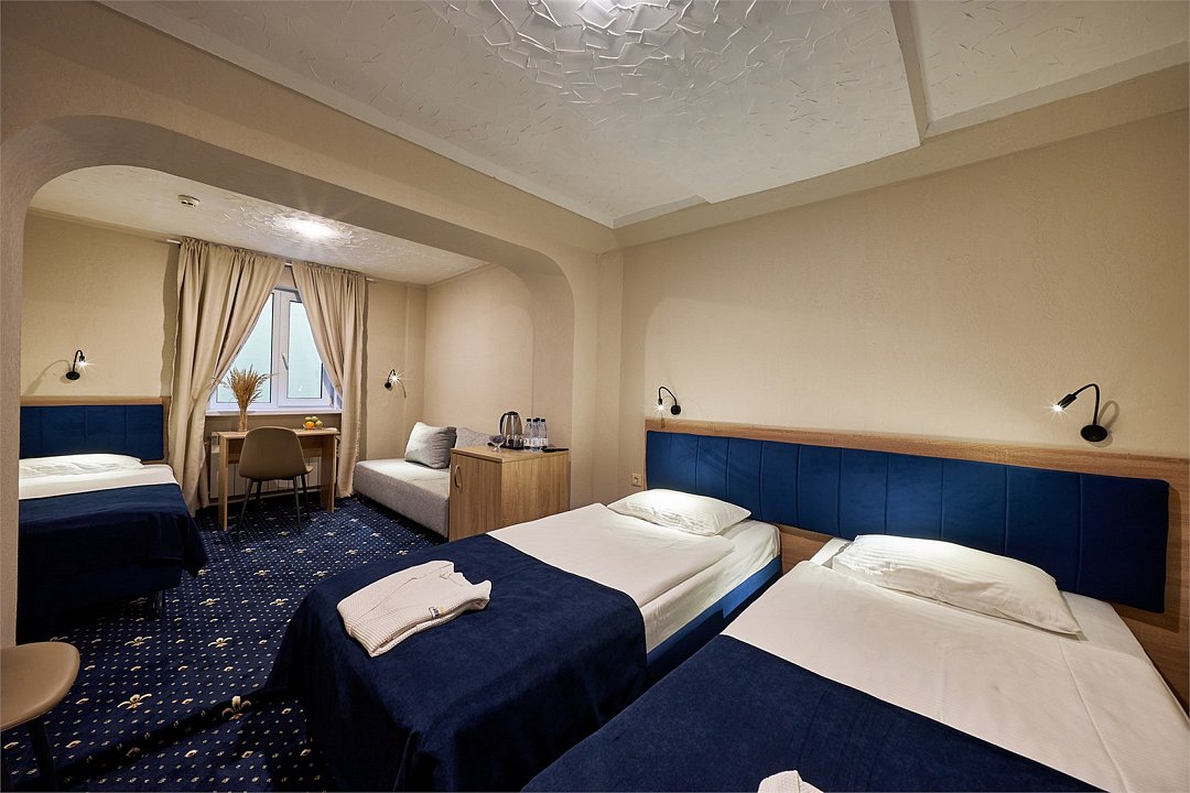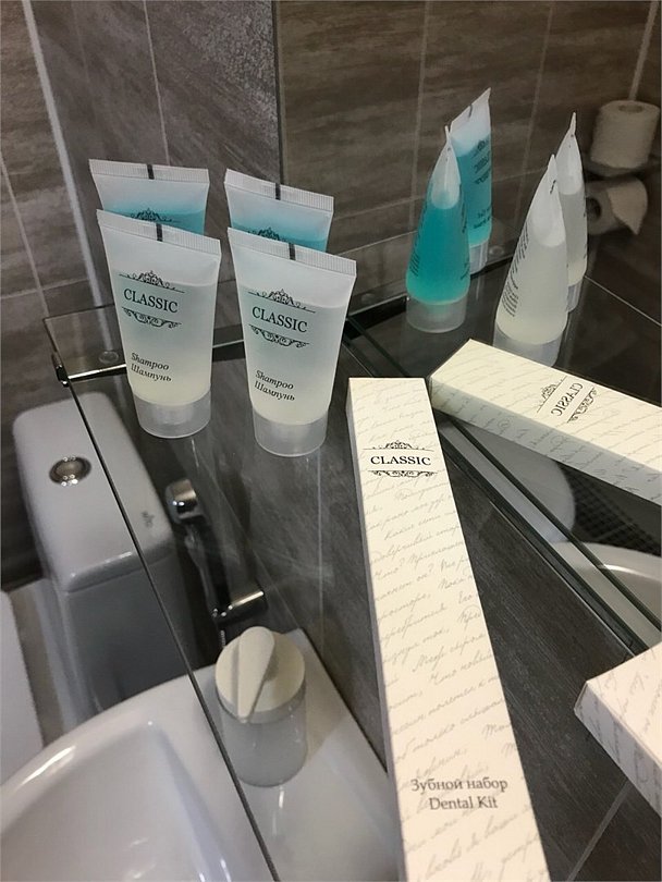 Средства личной гигиены (шампунь, мыло, гель для душа, зубная паста) • Мебель: прикроватные тумбы, рабочий стол, кресло, багажная полка, напольная вешалка для костюмов, настенная вешалка • По 3 полотенца на человекаУслуги и удобства