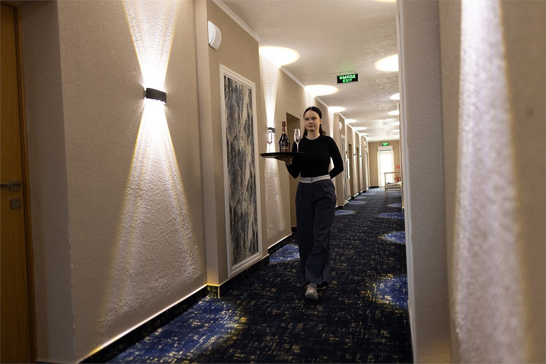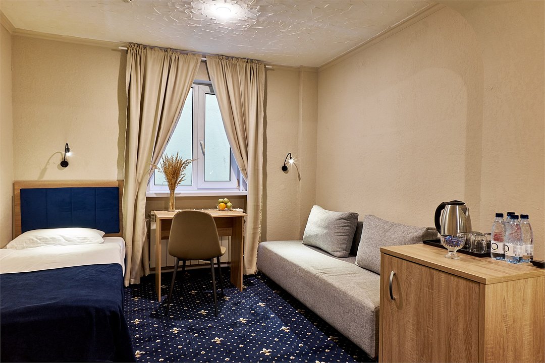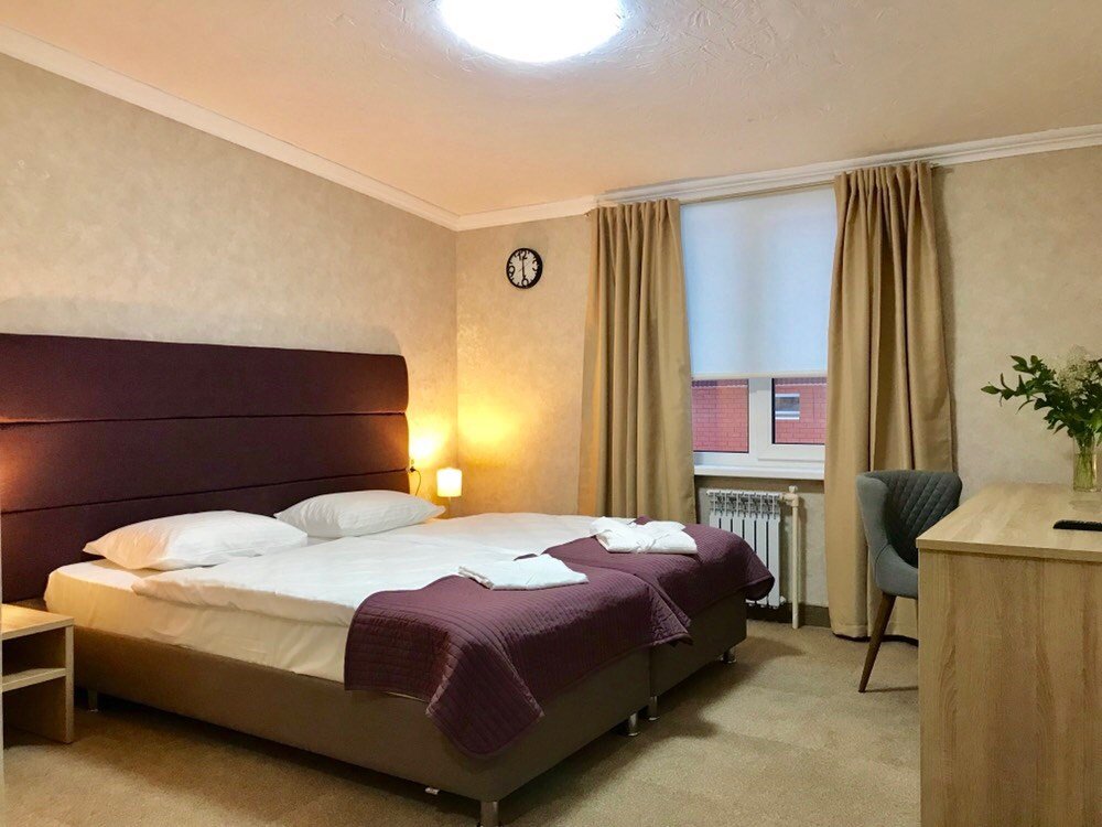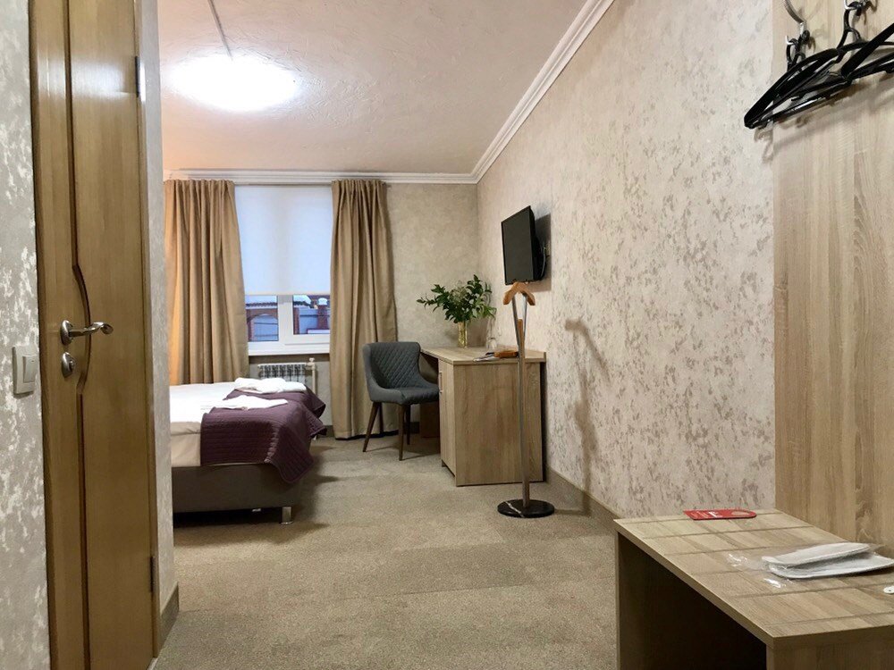 Комфортные номера • Средства личной гигиены (шампунь, мыло, гель для душа, зубная паста) • Мебель: прикроватные тумбы, рабочий стол, кресло, багажная полка, напольная вешалка для костюмов, настенная вешалка • Прикроватное освещениеУслуги и удобства