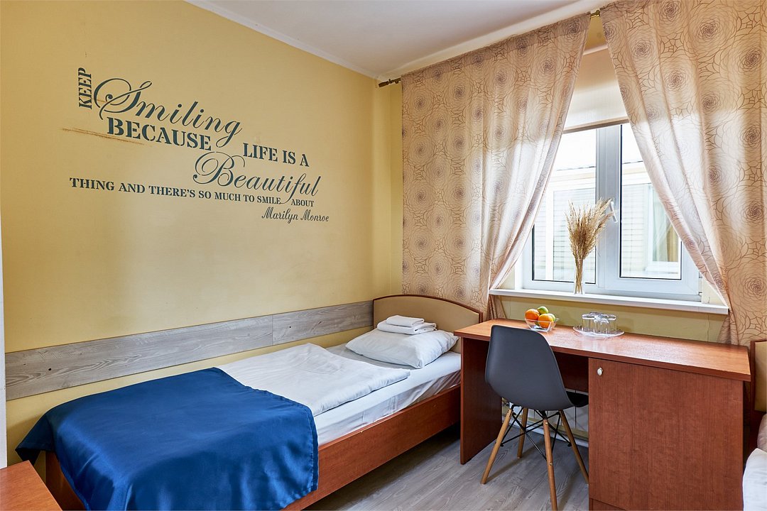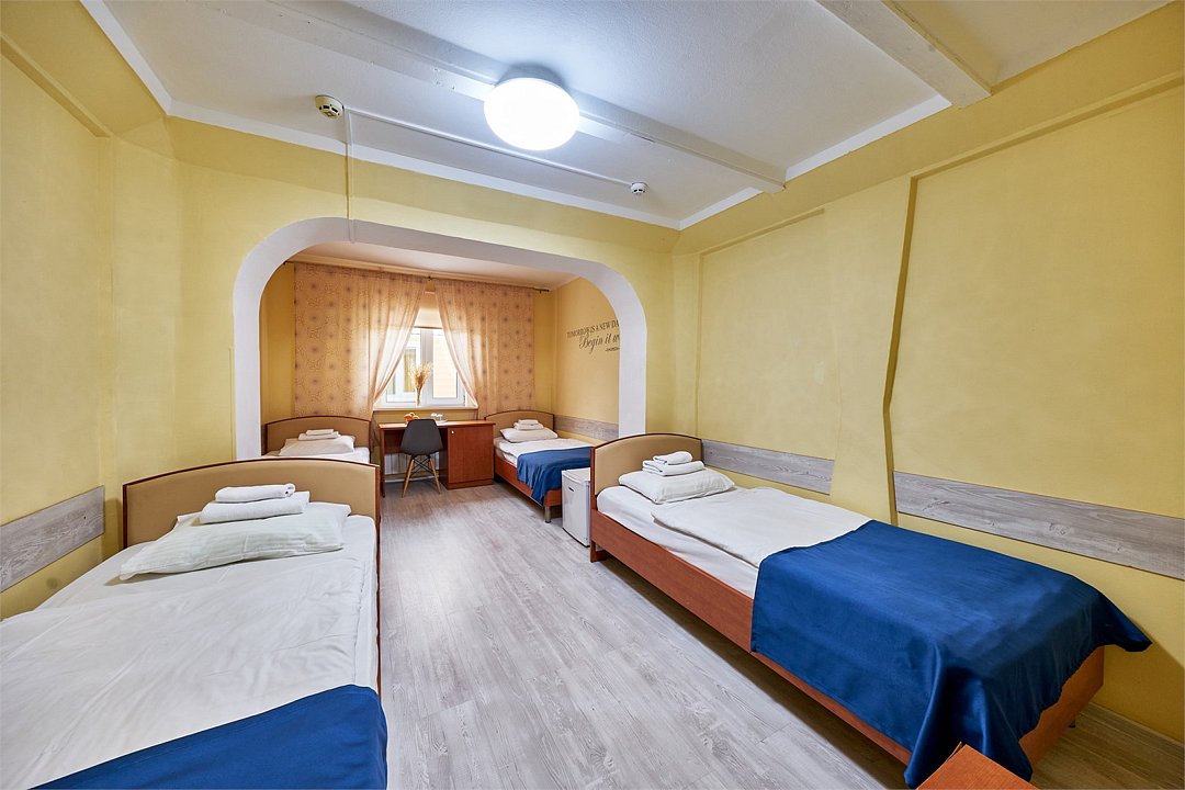 • Душевые кабины и санузлы, фен для волос во всех номерах • Средства личной гигиены (шампунь, мыло, гель для душа) • Куллер с горячей/холодной водой на каждом этаже • Гладильная доска и утюг в доступности на первом этаже • Мебель: рабочий стол, стул, прикроватные тумбы, шкаф, настенная вешалка для одеждыУслуги и удобства