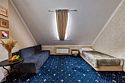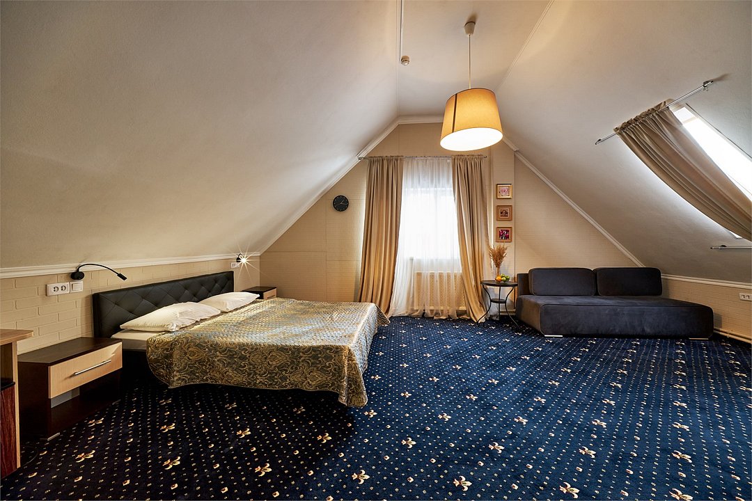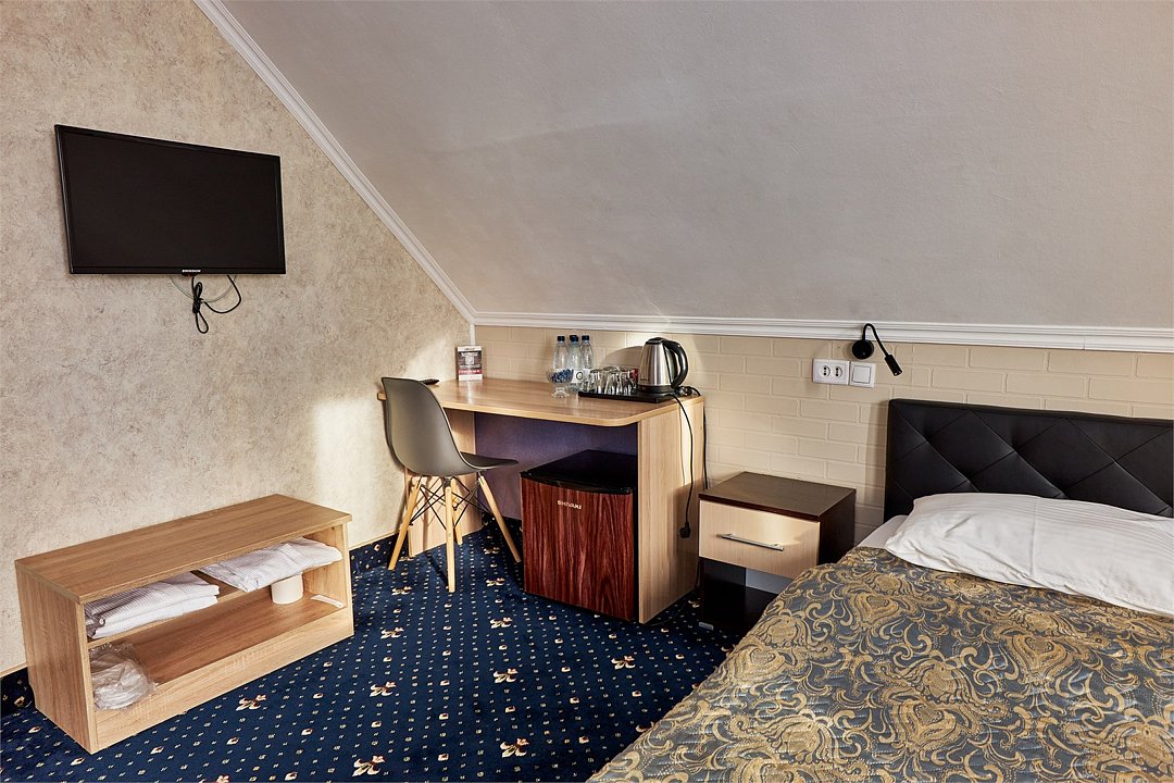 телевизор, Wi-Fi, интернет, светильник, фен, вентилятор, утюг, душевая кабина, банные полотенца, гигиенические средства, двуспальная кровать, полутораспальная кровать, тумбы, вешалки, письменный стол, багажная тумба, зеркало, пуфики, чайный набор, чайник, унитаз, раковина, питьевая вода, ковровое покрытие, кулер на этаже, кресло, вид во двор, диван-кровать, раскладной диван, мансардные окна, номер для некурящих, вид на лесВ гостиничном номере