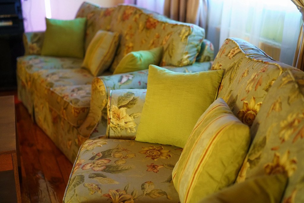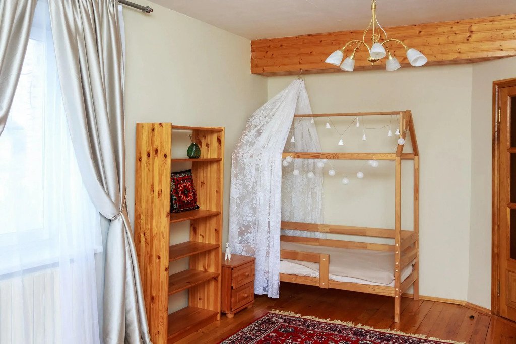 Также в коттедже есть зона отдыха с двумя диванами, креслами, проектором, шторами блэк-аут, фортепьяно; проходная игровая комната и раскладной диван, спальня с раскладывающимся диваном, шторы блэк-аут.