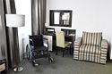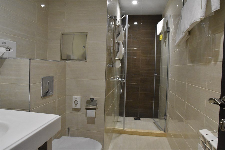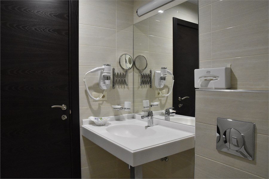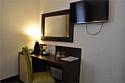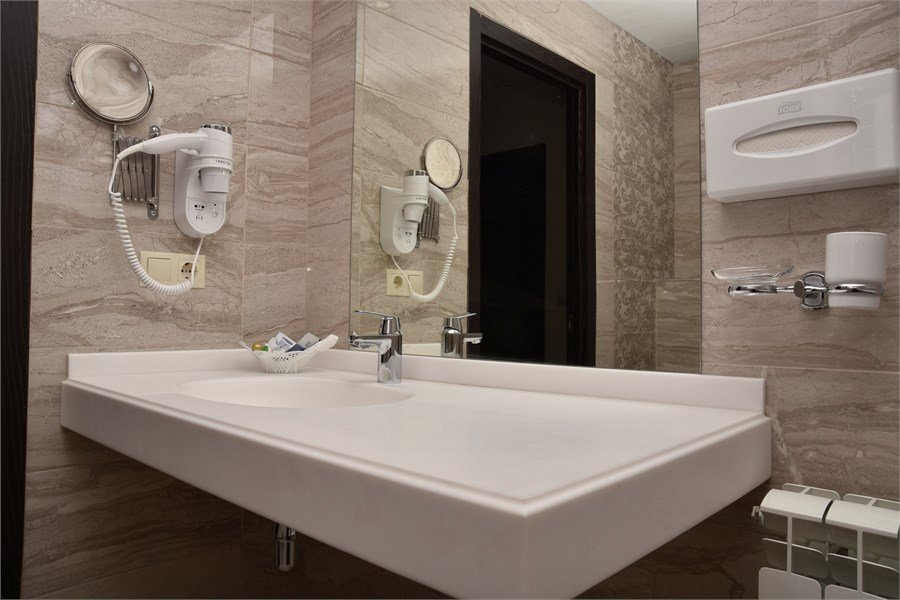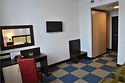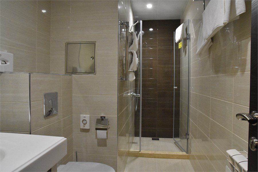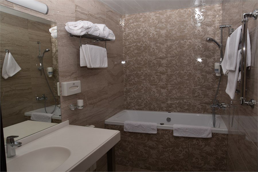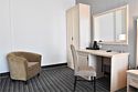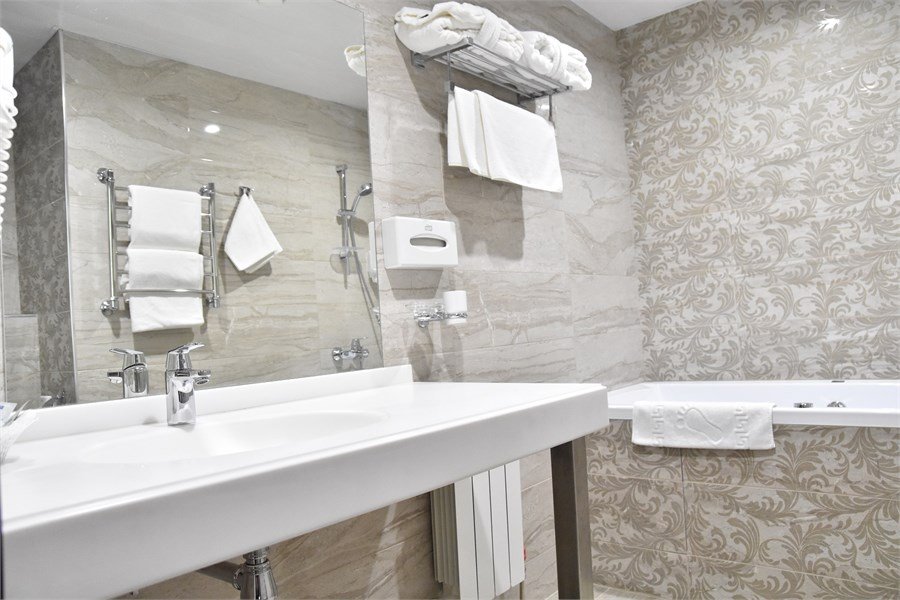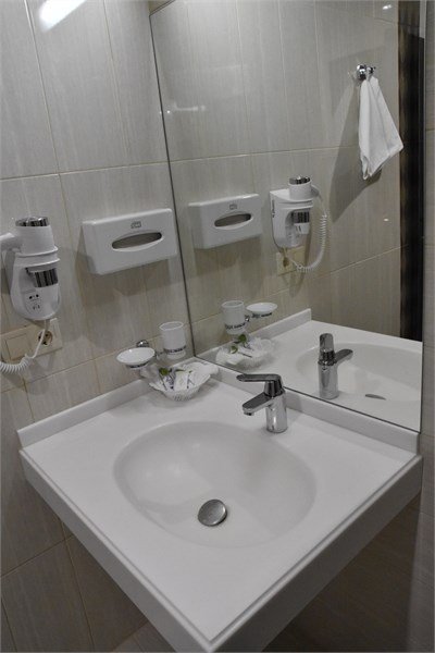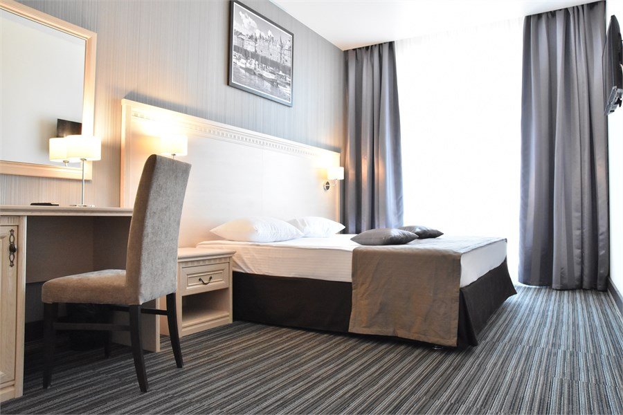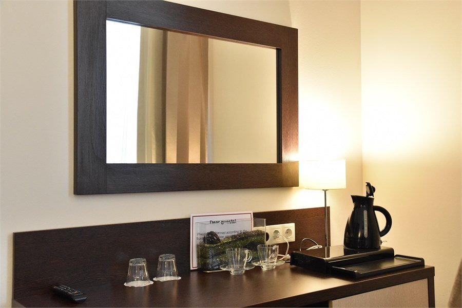 кабельное телевидение, Wi-Fi, телефон, холодильник, кондиционер, светильник, настольные лампы, фен, электронные замки, утюг, душевая кабина, халаты, банные полотенца, тапочки, гигиенические средства, косметические средства, две односпальные или большая двуспальная кровать, гладильная доска, тумбы, стулья, шкаф для одежды, вешалки, журнальный столик, письменный стол, багажная тумба, зеркало, комод, чайный набор, информационная карта, меню, сейф, унитаз, раковина, питьевая вода, ковровое покрытие, душ, вид на город, кулер на этаже, кресло, центральное кондиционирование, общая ванная комната, без питомцевВ гостиничном номере