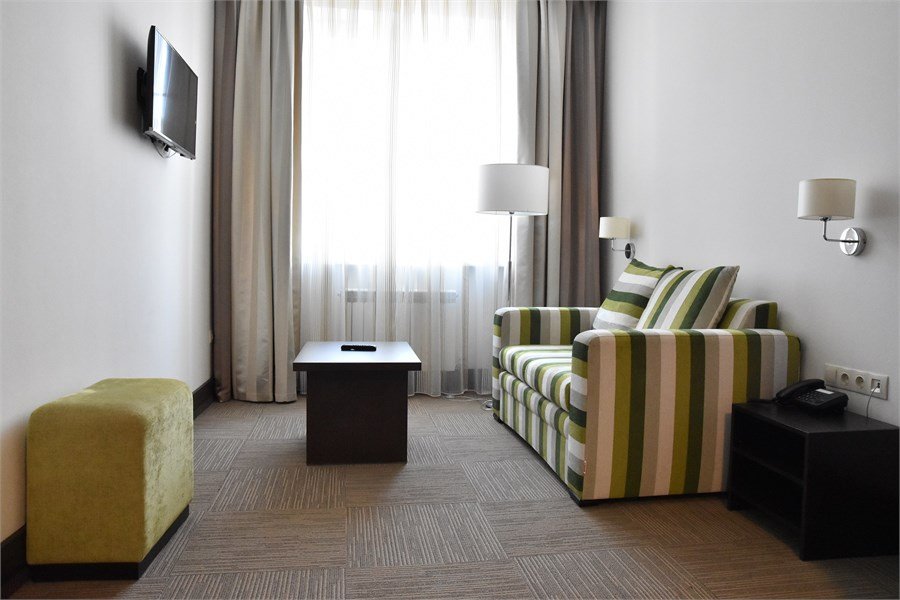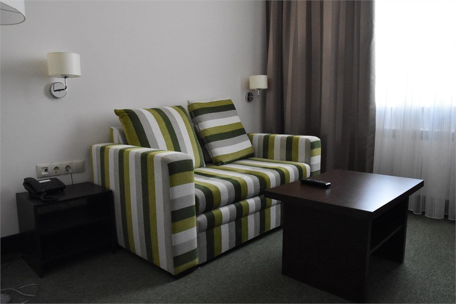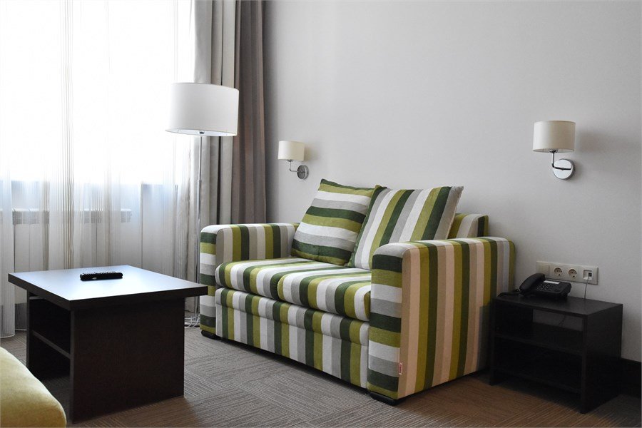 Люкс с кондиционером, гостиной зоной и диваном. Бесплатный Wi-Fi во всех номерах. Размер кровати/-ей: 1 двуспальная кровать или 2 односпальные кровати, 1 диван-кровать.Услуги и удобства