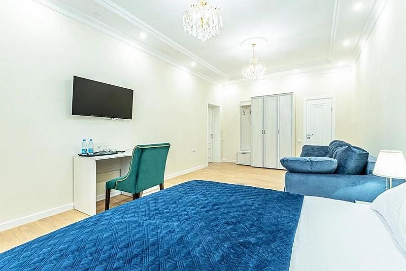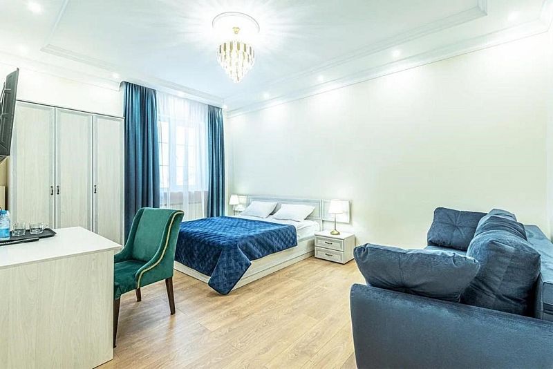 Номер люкс с двухместной кроватью King-size, и с диваном. Самый большой номер.