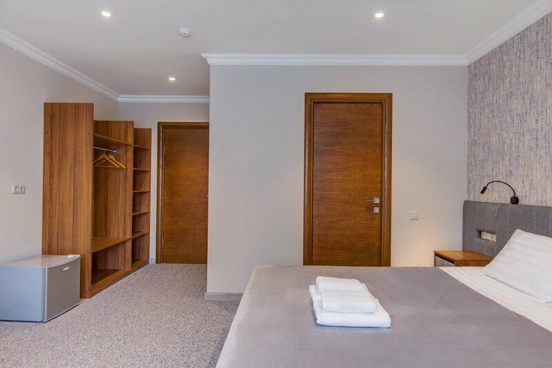 Самолетом до а/п Шереметьево, далее на маршрутке 949 или 948 (автобусы: 43, 851, н1 (ночной)) от ост. «Аэропорт Шереметьево» до ост. «Улица Маяковского», далее 480 м до ост. «Юбилейный проспект», далее на автобусе 32 (ходит до 18:09) до ост. «Совхозная улица», далее 900 м пешком до отеля.