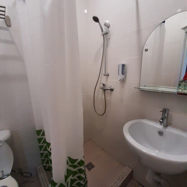 В номере душ, туалет. двухспальняя кровать и удобный диван.