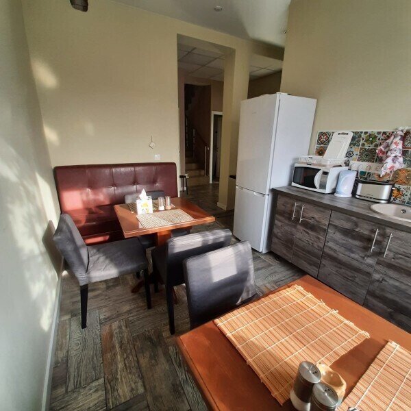 Семейный отдыхДостоинстваМы уже дважды останавливались здесь, бронировали заранее. Здесь есть все, что нужно уставшим путешественникам)) Кухня находится на первом этаже, где можно приготовить еду или просто разогреть что-то в микроволновке. Там же были чай, кофе, сахар, соль, приправы и конечно, холодильник. Хозяева очень добрые, отзывчивые люди, всегда готовые помочь. Когда мы второй раз прилетели поздно ночью, они без проблем нас встретили и заселили. Расположение рядом с аэропортом Шереметьево делает это место идеальным для тех, кто летит с пересадкой и хочет переночевать, принять душ и перекусить. В окрестностях также есть магазины и кафе, что также очень удобно. Обязательно остановимся здесь еще, спасибо за комфортные условия и теплый прием!